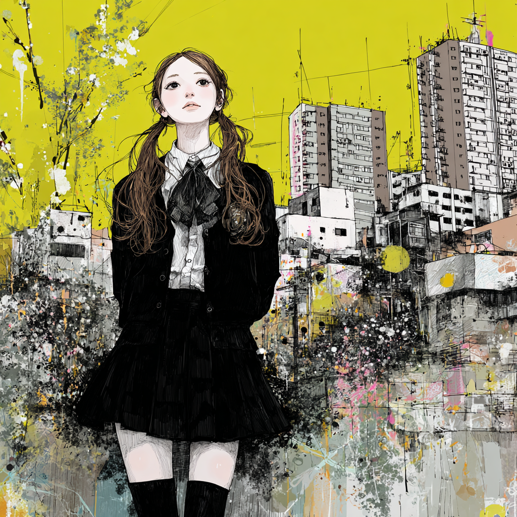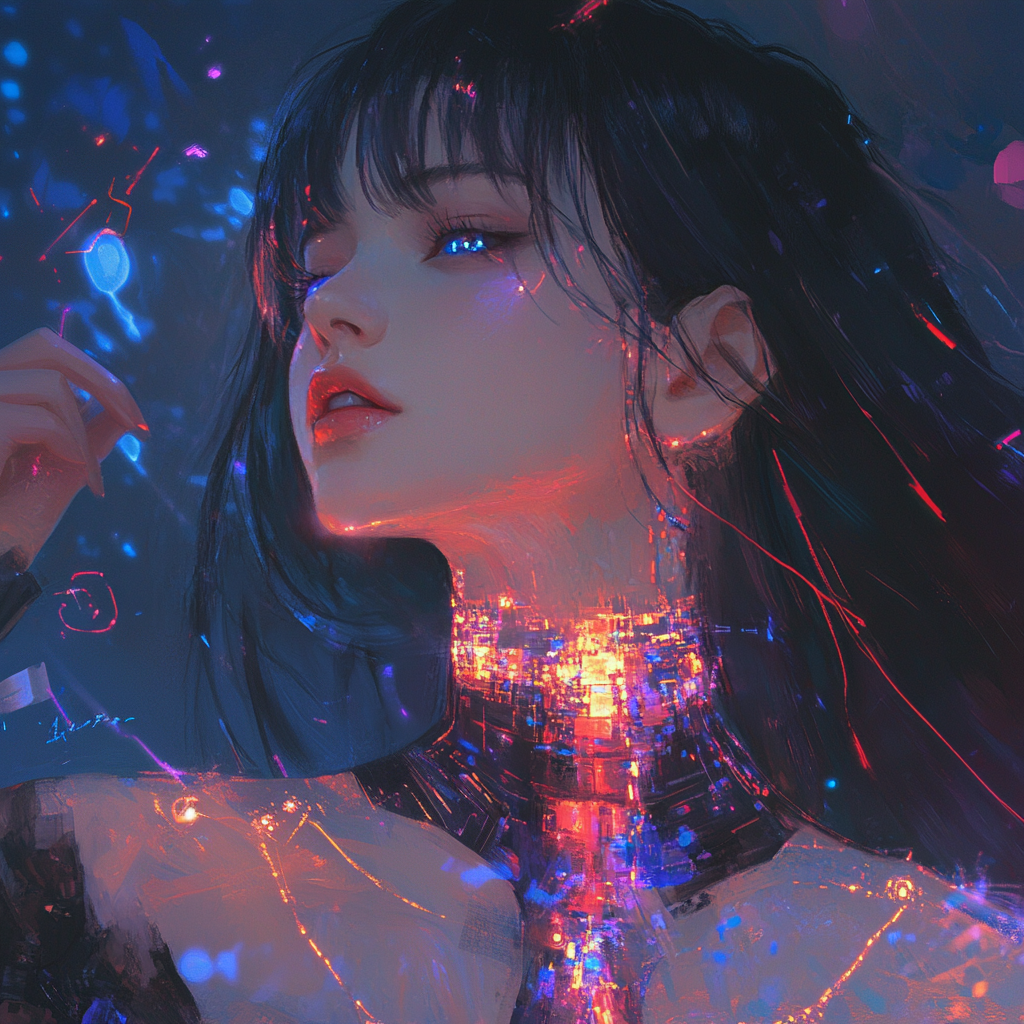 A sorrowful Japanese enka-style ballad fused with cyberpunk textures, The melody uses traditional Japanese minor pentatonic scale (yo-scale) and enka-style chord progressions like Am–Dm–E7, Features a male vocal in classic 1970s enka style, with deep vibrato, expressive kobushi phrasing, and strong projection, Includes a spoken word bridge like a heartfelt monologue, Backed by glitchy synths, shamisen-like plucks, slow taiko-like drums, and a neon-drenched atmosphere, Must feel nostalgic and emotional, like singing alone in a rainy virtual alley on a Tuesday night