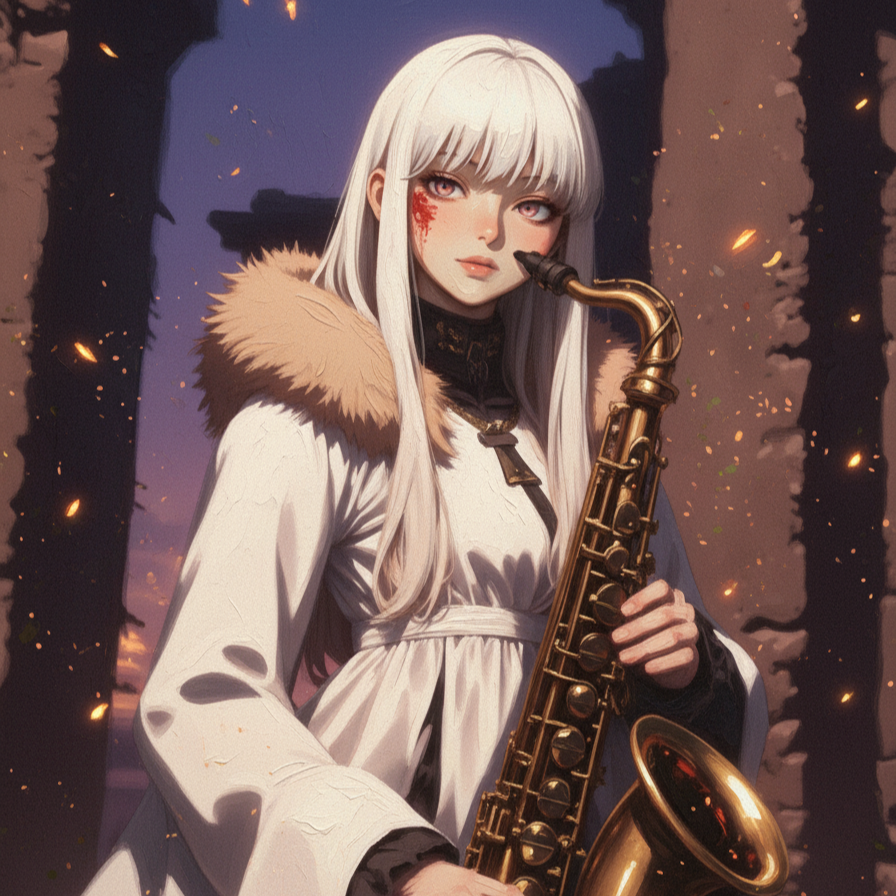 **Vocals:** **Female Spoken Word/Clean Delivery**, Must sound **evil and angry**, **Saxophone:** **Haunting lead, ** Plays **hyper-speed, chromatic, arpeggiated technical metal riffs**; melody follows **Jazz scale**, Replaces solos with crushing blasts, **Brass Orchestra:** Full ensemble, Plays **hyper-speed, chromatic, arpeggiated technical metal riffs** with the sax, **Piano:** **Dissonant, clear tone, ** Plays **fast, chromatic counterpoint riffs** and unsettling chord clusters
