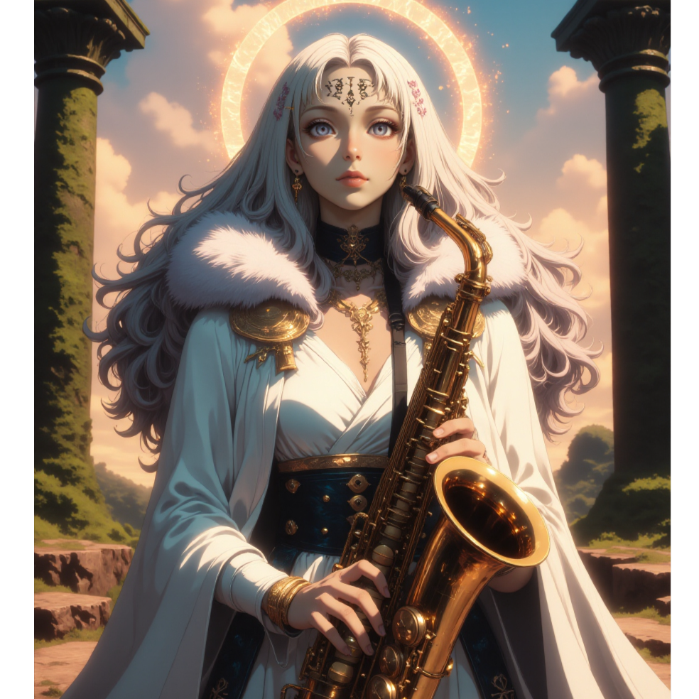 Technical Death Metal, inspired by The Zenith Passage - Datalysium, Aggressive yet intricate drumming, complex fretless basslines, crushing saxophone instead of guitar, and dissonant brass orchestra hits, Features melodic saxophone solos, ambient synth pads in the background, and ethereal, airy female clean vocals
