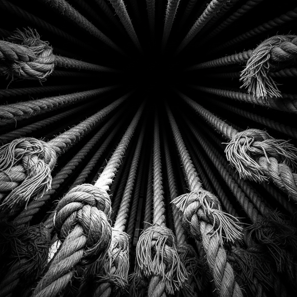 Abrasive, high-gain Industrial Rock and Post-Punk Revival hybrid, featuring a relentless, tight 115 BPM rhythm section in E Phrygian minor, The atmosphere is tense, cinematic, and aggressively mechanical, built on syncopated percussion, distorted subterranean bass, and sharp, angular guitar riffs, The texture must be cold and metallic, reflecting rock shear and choke points, Vocals are delivered by [Aura vocals: glottal fry, fibrillating, tight-throated, cracked, stuttering, laryngeal] with an arid, steely timbre, utilizing a frantic, high-energy reciting style and abrasive, declarative phrasing, Key musical moments include rhythmic polyphony, heavy use of suspended chords for harmonic tension, and a sudden dynamic drop in the bridge where the rhythm section collapses to a simple kick pulse and a high drone, emphasizing the lyrical concept of stillness, The final chorus uses tight, layered harmonies to create a sense of manic triumph, ‑humming intro, ‑hum, ‑vocalise, ‑humming, ‑intro