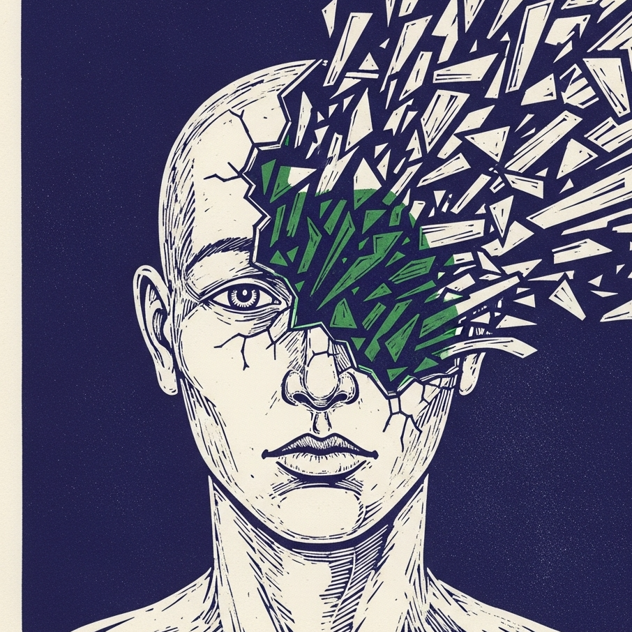 Pub-post-punk fused with 90s boom-bap drums in the vein of Gang of Four's skeletal aggression, Bass is a monolithic, sub-frequency eighth-note pulse, Guitars are palm-muted, barre-chord percussive stabs with sharp treble cut, no effects, Drums are dry, boxy, close-miked with gated reverb only on snare rimshots, Vocals are double-tracked with slight comb-filter effect, delivered with broken-nose wheeze and projectile staccato, breathless, with vocal fry cracking on long notes, Mix is mid-forward, low-end controlled but heavy, high-end shelved, Tempo 110 BPM, [Shank vocals: fibrous, metallic, reedy, harsh, smoky, granular, crackled, leathery, conversational, percussive, behind-the-beat, hoarse, fibrillating, glottal fry], ‑humming intro, ‑hum, ‑vocalise, ‑humming, ‑intro