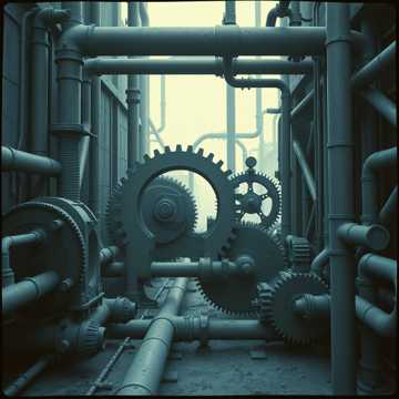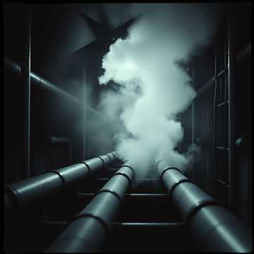 Industrial Slowcore, A massive, cavernous soundscape defined by the slow, grinding pulse of a distorted, tectonic bassline and the sparse, sharp percussion of found-object metal hits and hissing steam releases, The atmosphere is cold, tense, and claustrophobic, dominated by deep sub-bass and decaying reverb tails, Instrumentation is minimal: a hypnotic, repetitive bass groove, a simple, punchy drum machine pattern with a heavy snare, and occasional dissonant, metallic synth pads that swell and recede like phantom pressure, The track builds tension methodically, culminating in an explosive final chorus with overdriven, wall-of-sound drums and screaming synth feedback before collapsing into near silence, [Rivet vocals: coarse, gritty, weary, smoke-damaged, deadpanned, strained, with moments of desperate, shouted catharsis, heavy glottal fry], ‑humming intro, ‑hum, ‑vocalise, ‑humming, ‑intro
