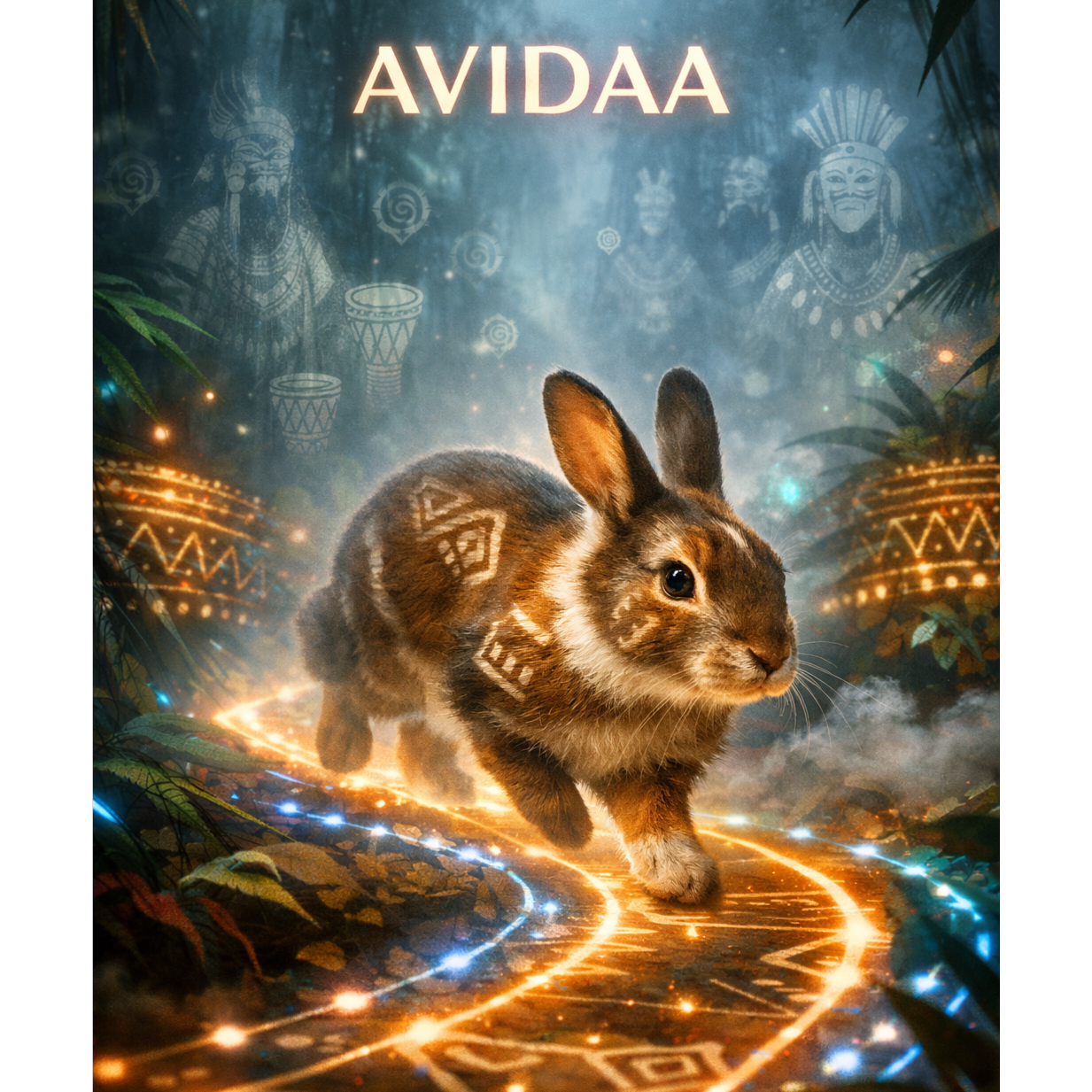 Jungle Afro-tribal ritual, 105–108 bpm, cinematic ambient depth, immersive percussion (hand drums, congas, low toms, maracas, seed shakers, subtle Benta rhythm), layered jungle textures (insects, distant waterfalls, wind through trees), soft fire crackle and mist, deep tribal bass pulse evolving through 6–6:30 minute structure, male/female shamanic Papiamentu chanting, call-and-response, breath textures, ceremonial crescendos, minimal melodic accents, immersive spatial reverb, gradual build from quiet ritual to full tribal intensity, English pronunciation of “AI” as letters (A-I), subtle echo on “Bloki Genesis” equivalent lines, clean professional master, hypnotic, cinematic, soulful, AVIDAA