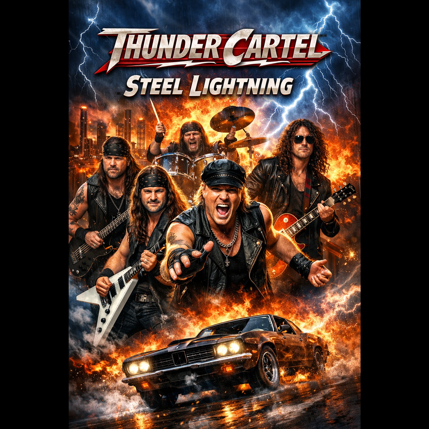 80s hard rock / heavy metal live TV broadcast sound (~130 BPM), like a pro festival stream, Clean but raw mix: clear vocals, defined guitars, tight bass, punchy drums, with natural crowd ambience and stage reverb, Light broadcast compression, wide stereo image, but still dynamic and energetic, Smoky, raspy male lead vocal — controlled yet gritty, Strong crowd interaction: chants, claps, call & response (“Hey! Hey!”), audience singalong, Loud, authentic, live — not studio polished, Structure: