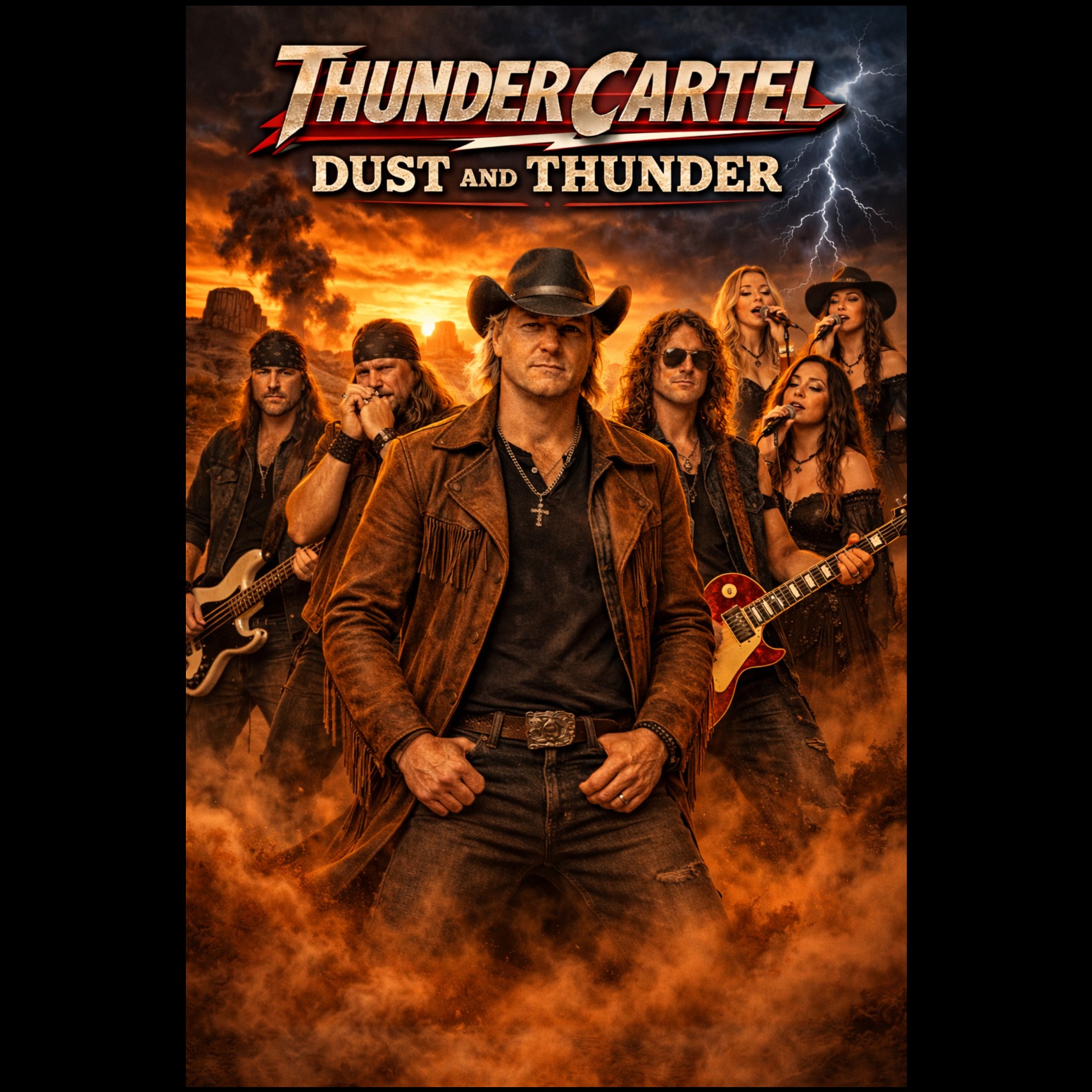 80s/90s Hard Rock / Heavy Metal fused with cinematic Spaghetti Western (Ennio Morricone-inspired), Mid-tempo (~90–95 BPM), minor key, dark and atmospheric, Intro led by expressive melodic whistling (very prominent, haunting), supported by tremolo electric guitar, ambient wind FX, and subtle female choir, Add dusty harmonica phrases answering the whistle melody, Verses: tight palm-muted riffs, steady bass groove, dry snare, sparse harmonica fills, Pre-chorus builds with rising chords, layered male backing vocals (4 voices), and swelling choir, Chorus: powerful, melodic, wide guitars, strong hook, gang vocals, whistle doubling lead melody, Bridge: instrumental break with extended whistling lead, emotional harmonica solo, reverb-heavy guitar lines, and cinematic choir, Male lead vocal: raspy, expressive, Outro fades with whistle, harmonica, wind, and distant choir