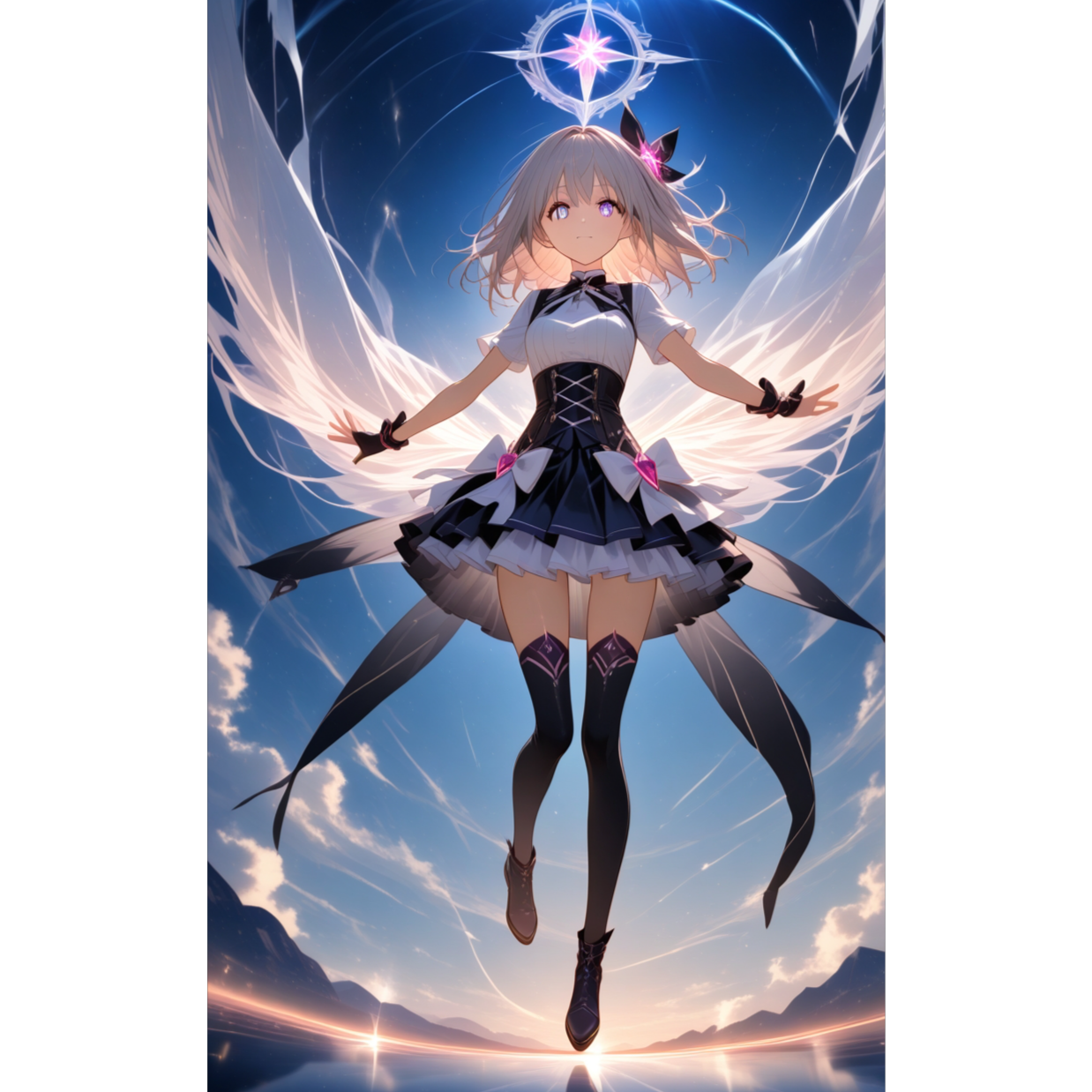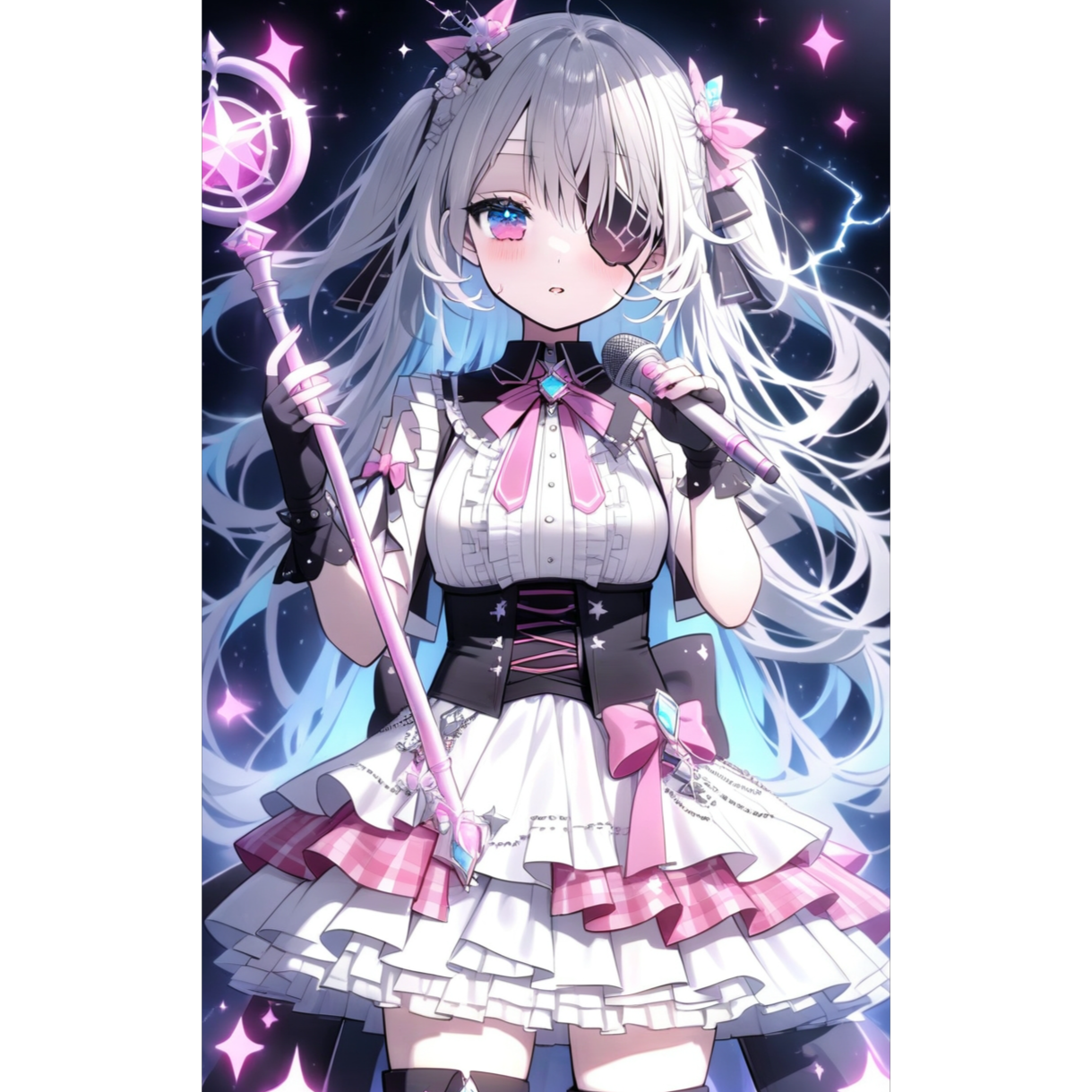 Opening with sparkling magic sound effects and playful synths, a bright pop idol band launches into a high-energy groove at BPM 165, Brass hits punctuate Luna’s dynamic question-answer MC lines, each moment followed by call-and-response cheers (“Luna-chan!” “Kawaii!”), Rhythmic claps and crowd chants amp up the concert vibe, while staccato guitars and punchy drums drive the pace, Dramatic magical-girl synth flourishes and circle FX accent pivotal lines, The song crescendos theatrically before Luna delivers her final, bold declaration atop a burst of magical SFX and roaring audience applause