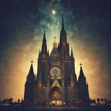lofty, divine, glorifying, synth, strong base, chants, subtle stadium, echoes, crisp vocals