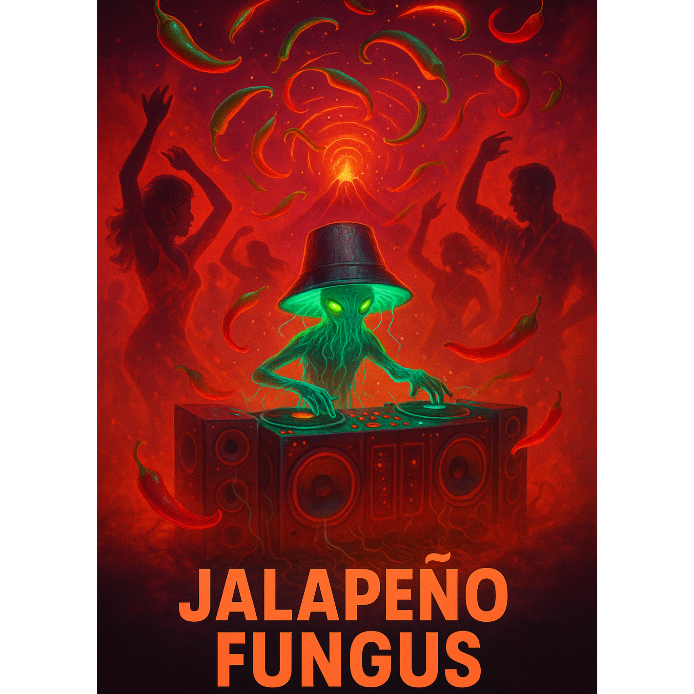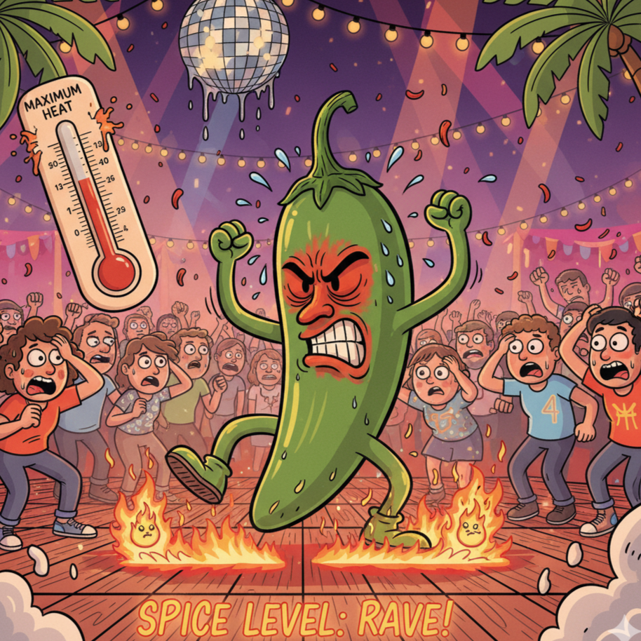 Kicking off with syncopated glitch-funk drums, fat psy-bass and percussive reggaeton grooves, the rhythm section is thick with agile congas, timbales, and crowd-pleasing claps, Playful vocal adlibs weave between brassy, bold horn stabs and spicy trumpet hooks, Verses lighten the groove, letting bouncy percussion fuel vocal storytelling, Pre-chorus tightens energy with stacked vocal harmonies and percussive fills, The chorus explodes with rowdy drums, shouting “Jalapeño” hooks, vibrant horns, and potent basslines, maximizing the party vibe, The bridge drops to halftime, awash in reverb and space, before an electrifying build surges toward a sweaty, explosive final drop, Latin, glitch-funk, and modern bass merge into an irresistible, cheeky club anthem