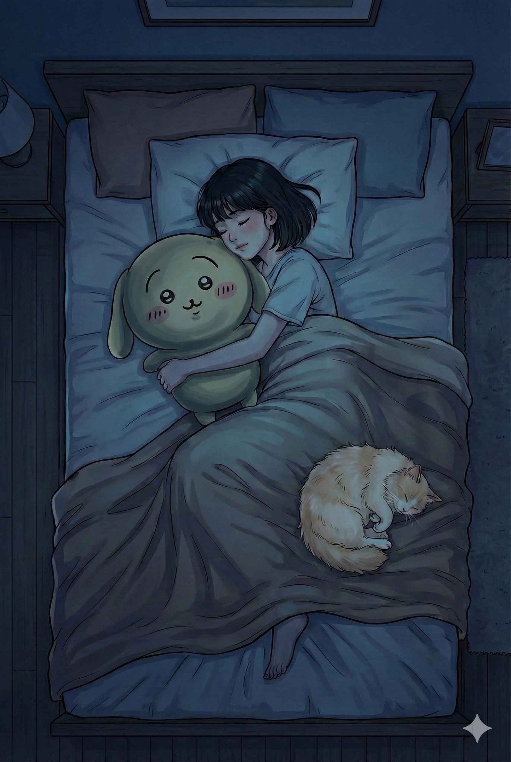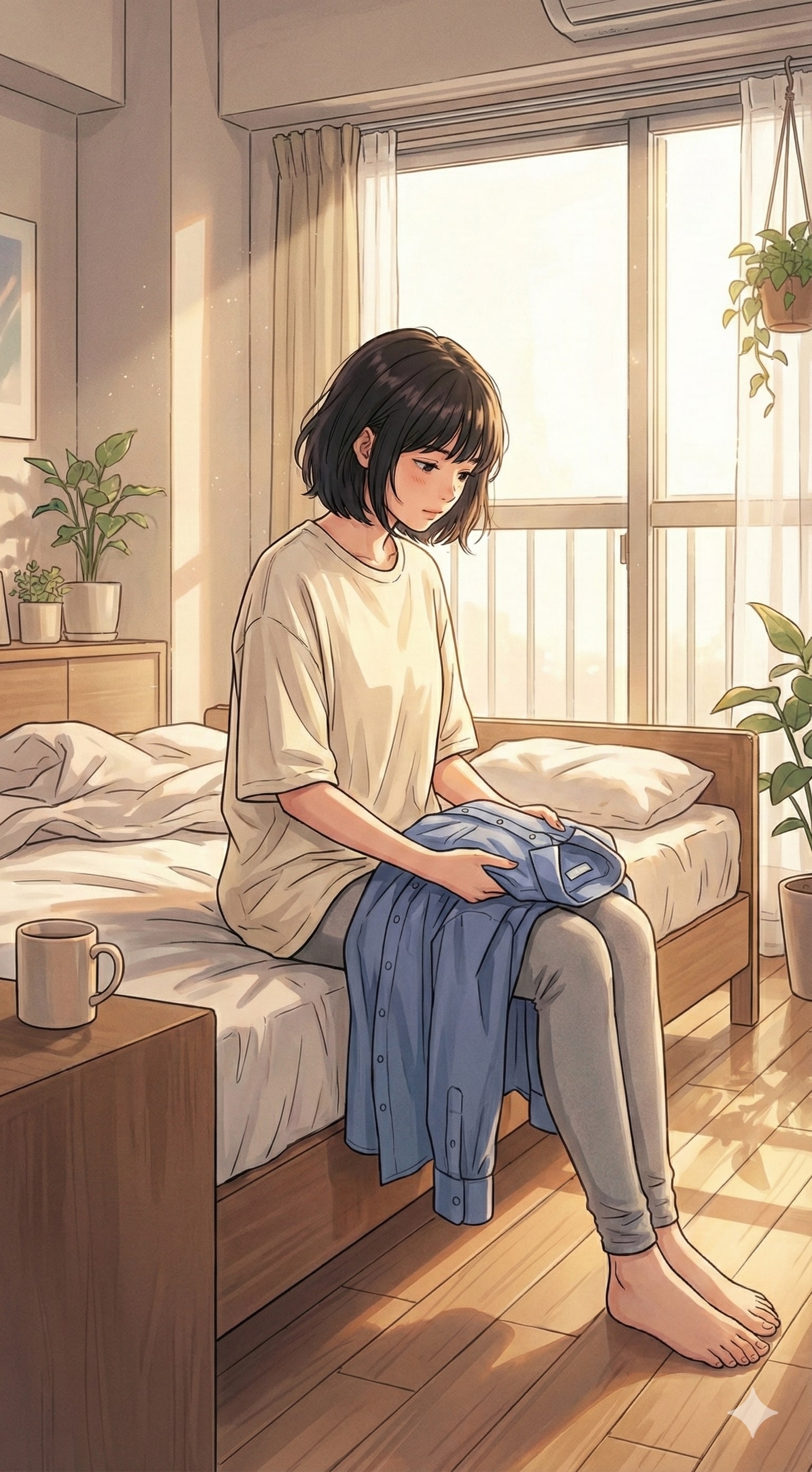 [Genre: J-Indie, Bedroom Pop, Acoustic Soul] [Rhythm: 76 BPM, Heartbeat Kick, Finger Snaps] [FX/Mix: Starts with HIGH AMBIENCE and dry foley -> Transitions to Analog Warmth and High Bass Volume] [Vocals: Extremely Dry, Intimate, *Breathy*, *Close Mic* Delivery -> Smooth Legato] [Instrumentation: Nylon Guitar Fingerpicking, Muted Felt Piano, Sine Wave Pulse], ‑(intro ad-lib)