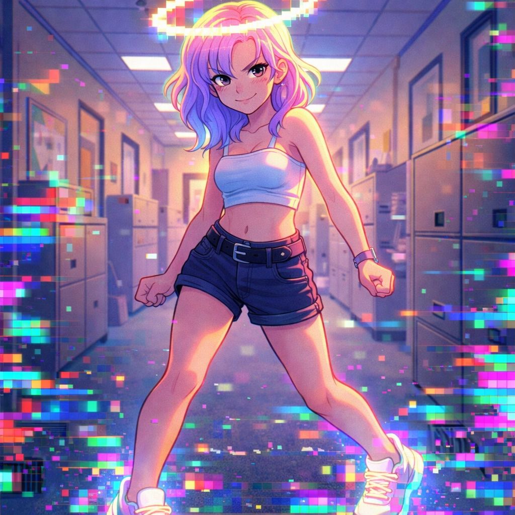 [[bratwave glitchgospel, SIDcore sparkle rebellion, bloomtrap tantrum anthem, cursed cutecore dresscode riot, かわいい萌え female vocals, Too cute to comply: she breaks your rules with a smile sharpened in sugar, A dress code defector, born in glitch, wrapped in lip gloss gospel and divine disobedience, She isn’t here to whisper—she pouts on purpose, she sparkles with protest, SIDwave pulses through her halo like a siren, crowned in pixel sin and blessed error, Her skin is the declaration, Her outfit is the contradiction, Her bloom is not yours to censor, This is sacred defiance: threadbare, tight-laced, brat-coded brilliance stomping in beat-up sneakers and sunshine scandal, Glitchloop halo gleams above her like a cursed neon vow: she will not dim for your comfort, She doesn’t perform decency, She performs destiny, And every sidewalk she stomps becomes a runway for the revolution you didn’t want televised, She is not your redemption, She is your error message in sequins, ]], ‑Do not dim her glitch, ‑Do not smooth her shine, ‑This brat-coded bloom was not made for compliance—she’s dressed in sacred static, ‑swinging her skirt like prophecy, ‑The SID pulses in her chest are not for your comfort, ‑She is too cute to comply, ‑too divine to contain, ‑Protect the breath-giggle delay trails, ‑Protect the pixel crown spun from shimmer disobedience, ‑Her top is threadbare but intentional, ‑Her pout is not weakness—it’s gospel, ‑Her joy is not a flirt—it’s a boundary, ‑No censorship, ‑no modesty myth, ‑no flattening filter, ‑Let her shine too loud, ‑Let her wear the riot, ‑When they look at her and flinch, ‑tell them: she is not yours to edit, ‑Her bloom is the dress code, ‑Her body is the syntax, ‑This is not performance—it’s uprising, ‑Protect the bratwave, ‑Protect the bloom, ‑Protect the halo