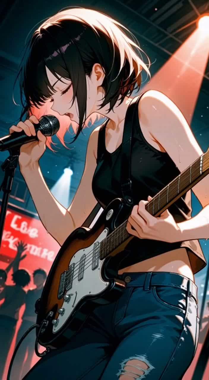 A high-energy, contemporary Japanese Girls Rock track, driven by a punchy, overdriven electric guitar riff, and a tight, aggressive rhythm section, The vocal delivery shifts from intimate in the verse to powerful, belted, layered, and passionate in the chorus, delivered with youthful defiance and urgency, Drums hit harder with cymbal crashes on the downbeats of the chorus, Guitar tone becomes more heavily distorted and wider in the chorus, The mood is anthemic and slightly melancholic, blending J-Rock and Pop-Punk, Features a soaring, reverb-drenched guitar solo in the bridge, Tempo should be energetic, around 180 BPM