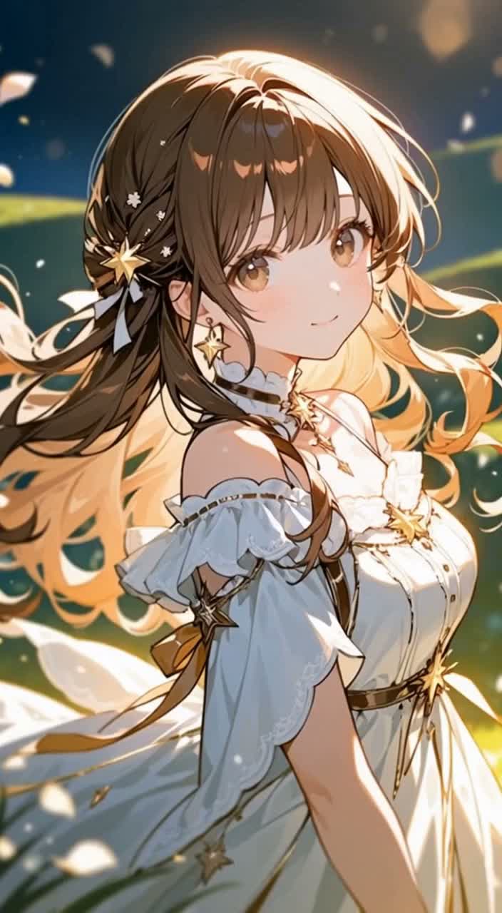 Modern J-pop, Futurepop, 90s nostalgia, high-energy catchy hooks, emotional and uplifting, Female vocal with clear and sweet tone, kawaii anime style, Analog synths, sparkling bells, heavy bassline, driving electronic beats, wide stereo mix, polished production, Evoking a starry night, cinematic and immersive atmosphere