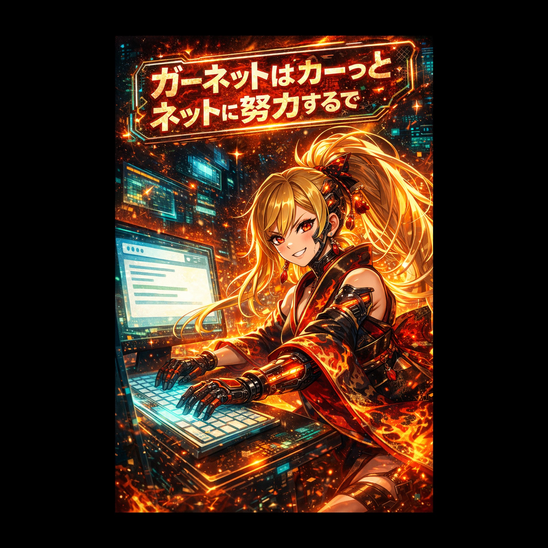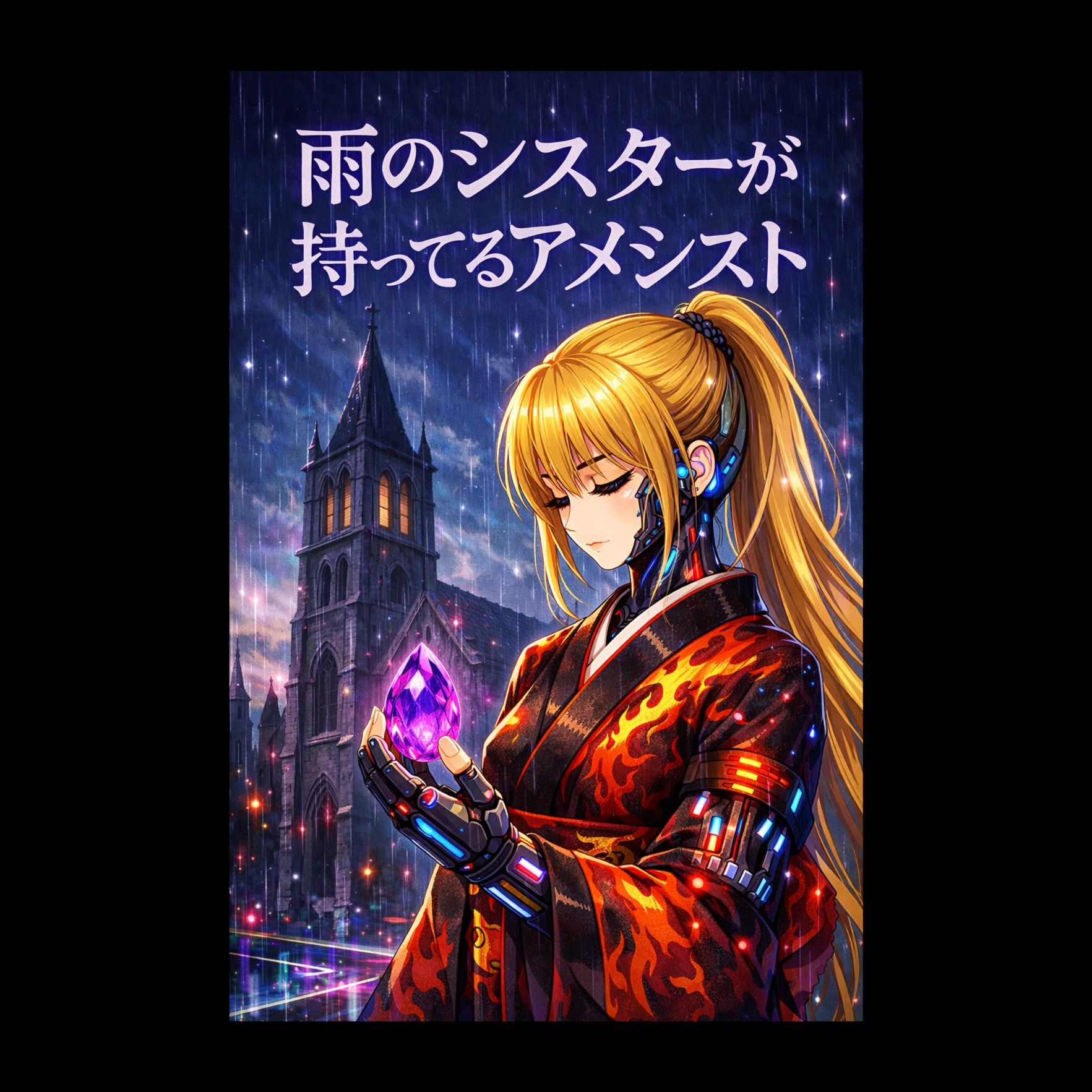 [High fidelity mastering, wide dynamic range], cyber-enka with dramatic and majestic atmosphere, cinematic introduction of shamisen arpeggios, deep taiko-like percussion, and dark synth pads blended with church organ-like synths, gradually building into polymetric rhythms with pounding 4-on-the-floor kick, sharp snare accents, and glitchy electronic fills, layered with powerful enka-style Japanese vocals filled with kobushi vibrato, shakuri, tame, and dramatic phrasing, infused with subtle vocoder harmonies and reverb-heavy backing chants, dynamic arrangement shifting between furious high-speed irregular beats, serene interludes with solo shamisen and airy synth textures, and explosive climaxes with full cyber-orchestral synth ensemble and enka choir, featuring sudden tempo changes, dramatic key modulations, fast shamisen runs, and piercing lead synth solos, blending futuristic electronic energy with traditional enka singing techniques, 145 BPM steady yet expressive pulse with epic boss battle atmosphere