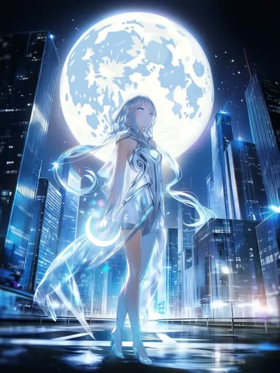 A mystical futuristic techno–trance track inspired by moonstone glow and a silent moonlit metropolis under a silver sky, Deep midnight atmosphere with shimmering blue-white synth layers that pulse like lunar energy, A beautiful, emotional moonstone-inspired lead melody — clear, crystalline, and slightly melancholic — flowing like silver light across a quiet city at night, Trance-style uplifting progression with evolving pads and subtle build-ups, creating gentle waves of euphoric energy, Crystal arpeggiators sparkle like reflected moonlight on glass skyscrapers, Steady hypnotic techno beat (around 124 BPM), minimal but immersive, gradually layered with trance rhythm elements, Warm, round sub bass moving like a slow cosmic tide beneath the city lights, Soft ethereal female vocals, airy and distant, whispering like wind drifting across a moonlit avenue, Reverb-heavy spatial depth, wide stereo field, delicate metallic textures, soft chime accents, and subtle atmospheric risers, The sound