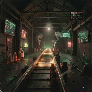 Industrial electronic trap, metallic percussion hits, distorted bass stabs, gritty synth leads, glitchy noise textures, heavy kick and sub layering, aggressive half-time bounce drops, robotic vocal chops, mechanical ambience, tense risers into stomping bounce sections, dark warehouse energy with relentless forward drive