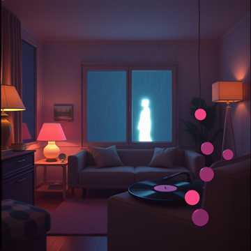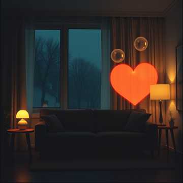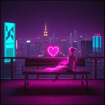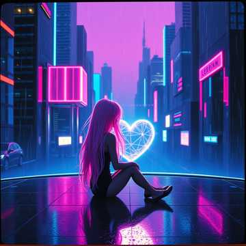 110–125 BPM romantic lo-fi trap with warm 808 sub-bass, soft punchy kicks, and gentle double bass drum accents used sparingly for emotional emphasis, Lo-fi drum texture with vinyl saturation, subtle tape hiss, and side-chained low-end for breathing motion, Dreamy electronic keyboard chords, muted synthwave pads, and airy reverb-washed leads create a late-night atmosphere, Metallic pipe hi-hats softened into lo-fi clicks, wind chimes, and bass-wind textures shimmer in the background, Pulsing and pulsating beats remain smooth and relaxed, never aggressive, Deep sub-bass glides, filtered bass movement, and ethereal reverb tails wrap the mix in warmth, Intimate, romantic, futuristic, emotional, and calm—perfect for late-night cyber love
