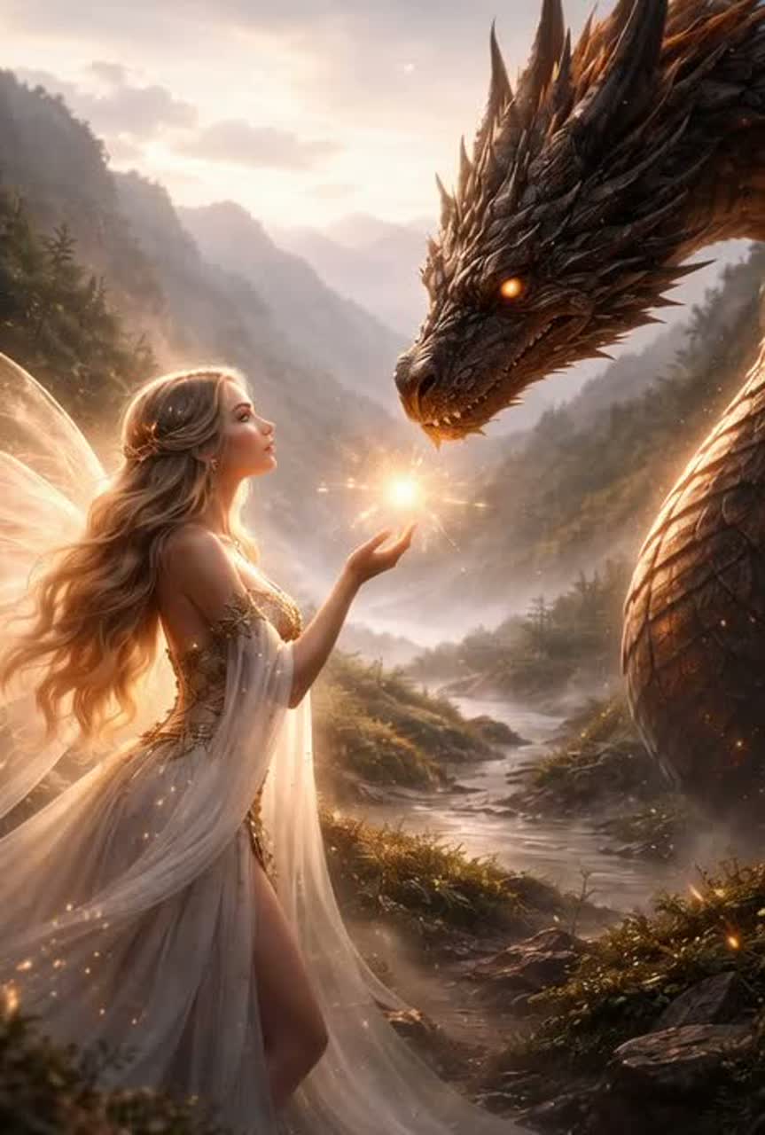 A fairy and a dragon walk through shadow, silence, and fire, only to remember the spark that cannot be extinguished.
