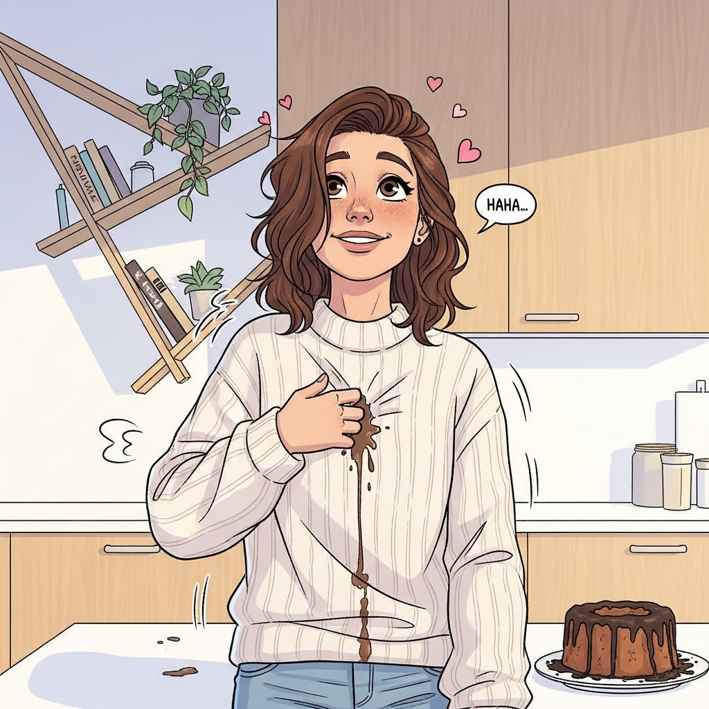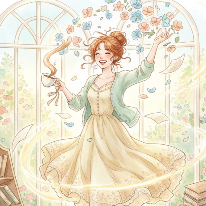 [mood: joyful, flirty, resilient; smiling through the rain, dancing instead of worrying; light-hearted confidence]
