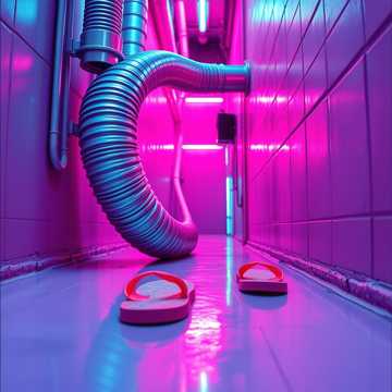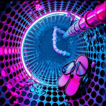 The techno trance track at 120 BPM launches with a minimal, deep sub-bass, dirty distorted synth stabs, and aggressive trap-infused drums on a driving TR-909 groove, A UK house buildup pushes intensity with a raw edge, Breakdowns are abrupt and bouncy, featuring PVC drain pipe and flip-flop samplesβsuper crisp pop, slap, and whack accentsβlayered into the percussion, Atmospheric textures, scattered DJ/radio voice drops, and restless soundscapes maintain energy, delivering a uniquely hard-hitting, monster club feel