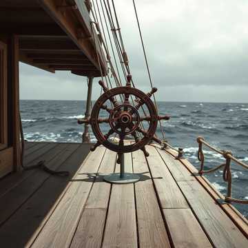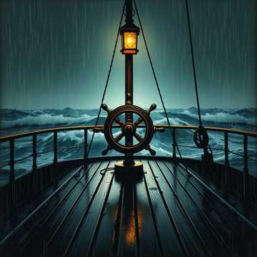 Epic Traditional Heavy Metal with dynamic pacing and tragic melodic emphasis, BPM: 172, Key: C♯ minor, Dual male vocals: dominant soaring high tenor (C3–F5) delivering sustained, dramatic lines with pronounced vibrato and emotional projection, reinforced by gritty mid-range backing shouts (A2–C4) used for emphasis in climactic moments, Guitars alternate between rolling gallop-driven riffs and expansive harmonized leads that evoke vast seascapes and impending doom, Palm-muted propulsion gives way to wide ringing chords in choruses, Bass underpins the harmonic shifts with steady low-end gravity and subtle transitional runs, Drums combine driving double-kick energy with tom-heavy fills that suggest crashing waves, The mix is bold yet atmospheric, emphasizing soaring vocals, layered harmonies, and narrative weight