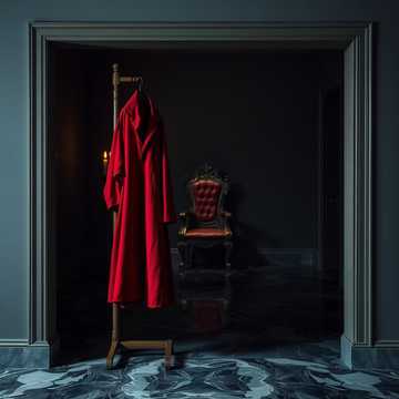 Dramatic Traditional Heavy Metal with gothic atmosphere and controlled tempo shifts, BPM: 158, Key: E minor, Dual male vocals: expressive high tenor (C3–E5) delivering sustained, theatrical lines with pronounced vibrato and shadowed phrasing, reinforced by restrained mid-range shouts (A2–C4) used sparingly for emphasis, Guitars balance tight palm-muted gallops with ominous ringing chords and dark minor-key harmonies, Twin leads are melodic and eerie, emphasizing phrasing and tension over speed, Bass supports with steady low-end weight and subtle transitional movement, Drums combine firm double-kick drive in heavier sections with measured snare and tom patterns in atmospheric passages, The mix is moody yet sharp, highlighting vocal drama and shadowed melodic lines