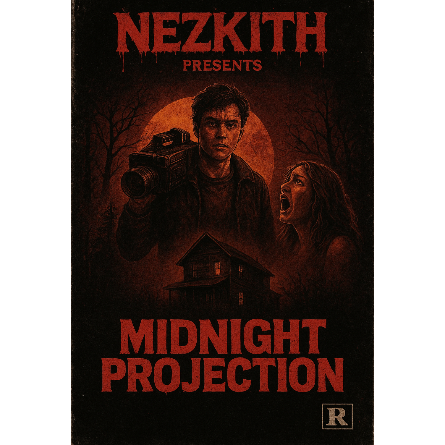 [Production Tags: VHS hiss intros, stabbing orchestra hits, wet gore splats, screams layered with metallic scrapes, reel-burn effects]