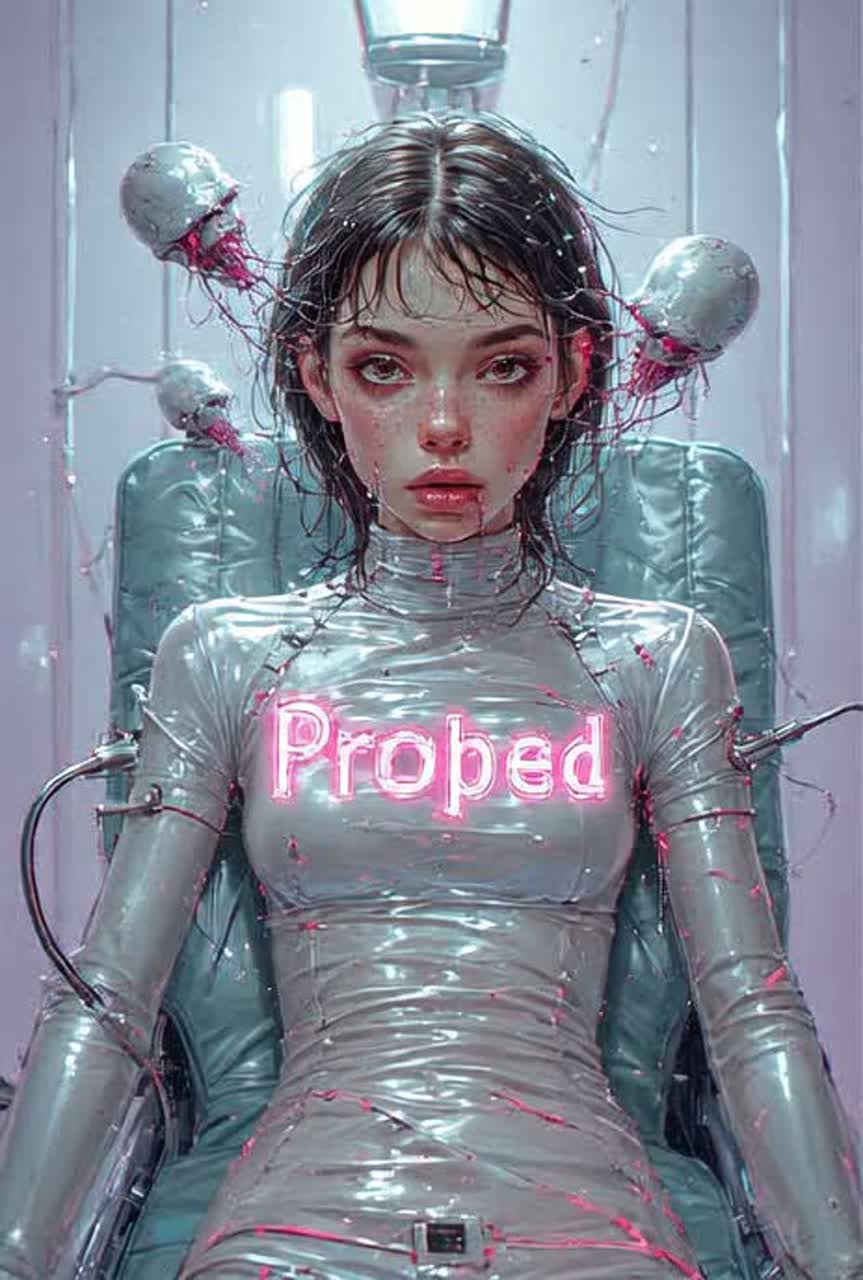 Pulsing frenetic EDM with illbient drones, uncanny SFX, eerie static, glitched samples, Synths wail, bass thumps, whispers hiss, Uneasy glitchcore/Trip-Hop edge, dissonant melodies, chaotic feedback for alien dread, SubGenres: dark fantasy / Electronic technical dark jazz / ambient / illbient fusion, Blends pulsing distorted electronic beats, lush ambient layers, and improvisational jazz for a cinematic, introspective vibe with intricate, glitchy undertones and melodic arpeggios, Music: Mid-tempo, uneven pulses, dynamic shifts from chaotic highs to quiet lulls, Starts with jagged synths, builds with layers, ends in eerie silence, Solos mix frenetic jazz with electronic swells, Instruments: