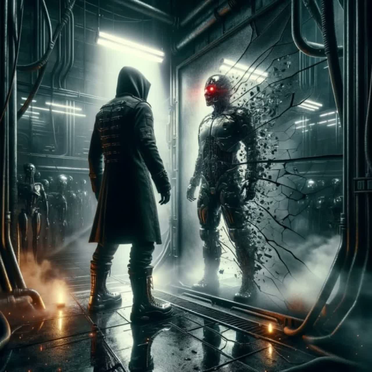 Piano bar and EDM / symphonic Djent / Dark alternative rock with electronic horror elements like echoing whispers in a stir of echoes, blending haunting indie pop introspection, experimental art rock surrealism, and industrial electronic intensity, Uses binaural and stereoscopic effects to build unease, Music Cue: Eerie, building tension; start minimal acoustic guitar whispers, escalate to synth waves, heavy bass drops in chorus, distorted guitars in bridge, Tempo 80-100 BPM, minor key, Mood: Psychological paranoia, identity crisis, haunting introspection, escalating dread and duality, Instruments: Female ethereal vocals with whispers/echoes, reversed piano, pulsing synths, deep bass, glitchy electronics, reverb-heavy drums, mirror-like sound effects (reflections, shatters), Add choral backups in build-up