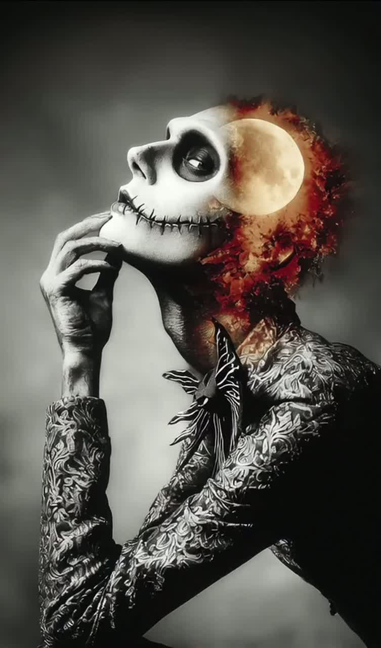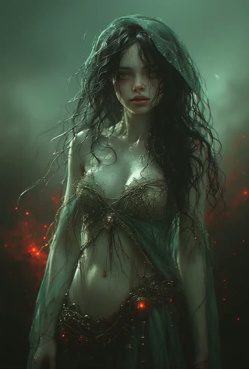 This hauntingly beautiful dark heavy djent / trip hop/ piano bar piece opens with piano, sitar plucks, and electronic pulses and delicate video game synth arpeggios, layered with sparse jazz improvisations on piano and bass, Sub-Genres: dark fantasy / Electronic technical dark jazz / heavy Djent/ illbient fusion, Blends pulsing distorted electronic beats, lush ambient layers, and improvisational jazz for a cinematic, bombastic vibe with intricate, glitchy undertones and melodic arpeggios, Music: Mid-tempo, uneven pulses, dynamic shifts from chaotic highs to quiet lulls, Starts with jagged synths, builds with layers, ends in eerie silence, Solos mix frenetic jazz with electronic swells, Instruments: