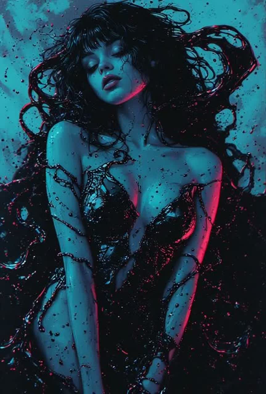 This hauntingly beautiful dark pop / prog rock piece opens with minimalist piano and electronic pulses and delicate video game synth arpeggios, layered with sparse jazz improvisations on piano and bass, Sub-Genres: dark fantasy / Electronic technical dark jazz / ambient / illbient fusion, Blends pulsing distorted electronic beats, lush ambient layers, and improvisational jazz for a cinematic, introspective vibe with intricate, glitchy undertones and melodic arpeggios, Music: Mid-tempo, uneven pulses, dynamic shifts from chaotic highs to quiet lulls, Starts with jagged synths, builds with layers, ends in eerie silence, Solos mix frenetic jazz with electronic swells, Instruments: