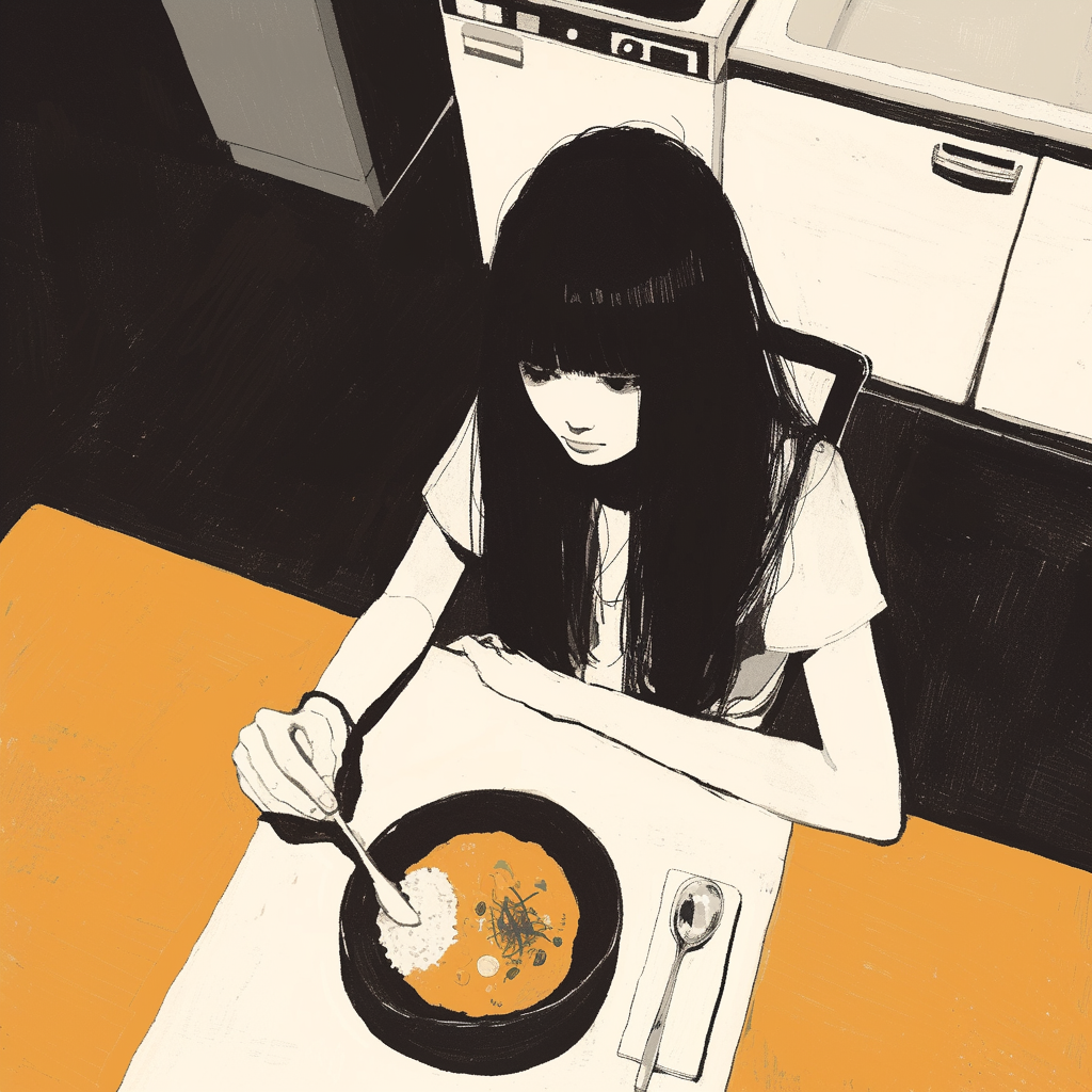 Create a live concert version of the song “熱情 (Nejou)”, as the 11th song in the setlist, The dreamy, chill atmosphere from the previous track still lingers, This track begins with a brief Japanese MC by vocalist Toto Fukami (persona: deep-sea fish) — understated, reflective, as the audience quiets and waits, The song is introduced by electronic ambient textures — gentle glitches, static, and filtered synth chords — that slowly evolve into the main body, Blend ambient pop and J-pop with slow post-rock pacing, subtle lo-fi distortion, delayed guitars, and warm but broken synth layers, Echoes of winter dusk, distant train crossings, lost love in a deserted city, Tempo ~76 BPM, Vocals must remain breathless, soft, emotionally restrained but intense, in Japanese, This is the artist’s iconic love song — passionate not through volume but through quiet persistence, End with a long ambient outro, fading into feedback and soft wind noises in the venue, as if memory is gently disappearing