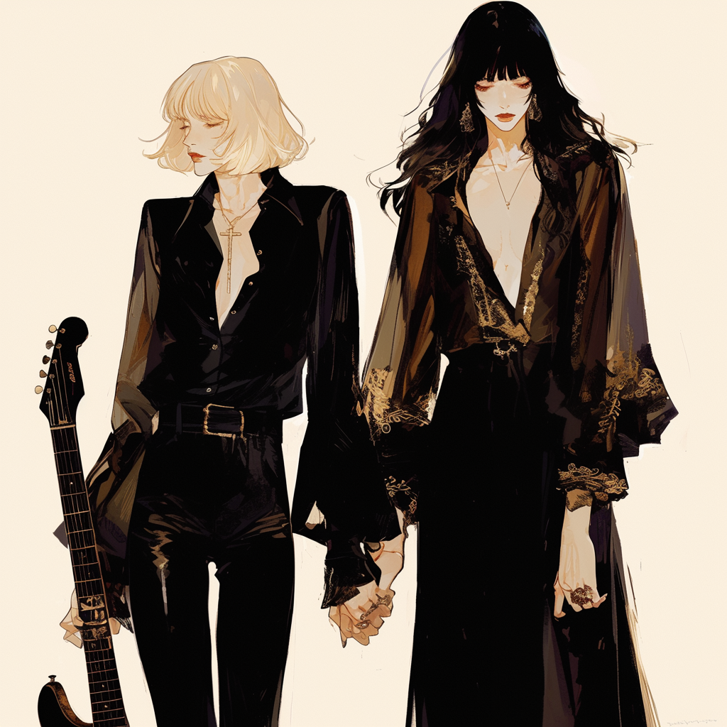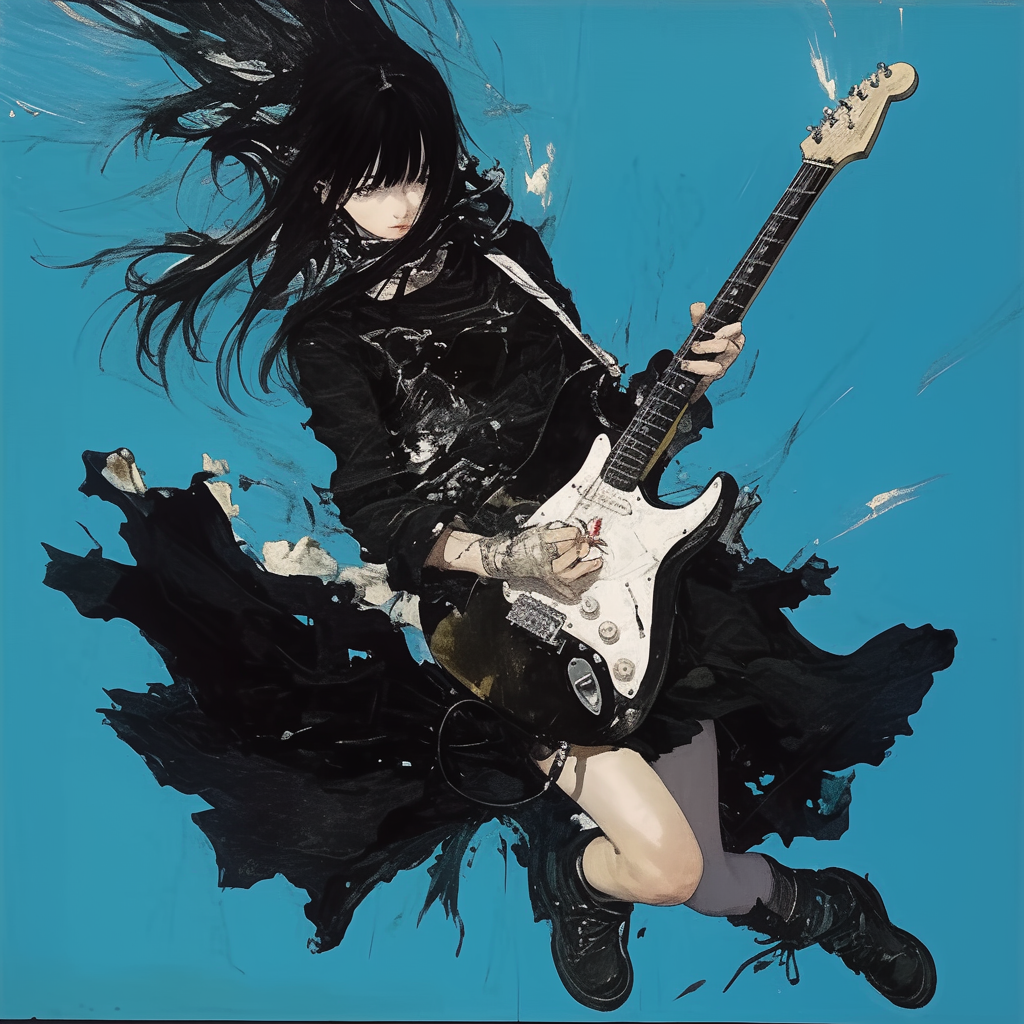 Create a live concert version of "GIRLS ON WIRE" — track #12 in a cinematic electropop/post-rock setlist, Atmosphere is dreamy and introspective, continuing the chill tone from the previous song, Set in a midsize live venue (800-1000 people), recorded with ambient crowd noise, spatial reverb, and subtle stage mic effects, Starts with soft spoken MC in English and Japanese by the female vocalist, thanking the audience and introducing the next song, Opens with a melodic, reverb-heavy distorted guitar phrase, slowly building with ambient textures, soft electronic beats, and melancholic female vocals, Embrace lo-fi textures, android love themes, clean/distorted guitar interplay, and a slow bpm (around 85), Final whispering monologue in Japanese floats over an ambient pad, then transitions into a delicate, emotional and soaring guitar solo to close the track with a gentle fadeout, Make it intimate, emotional, ethereal, cinematic