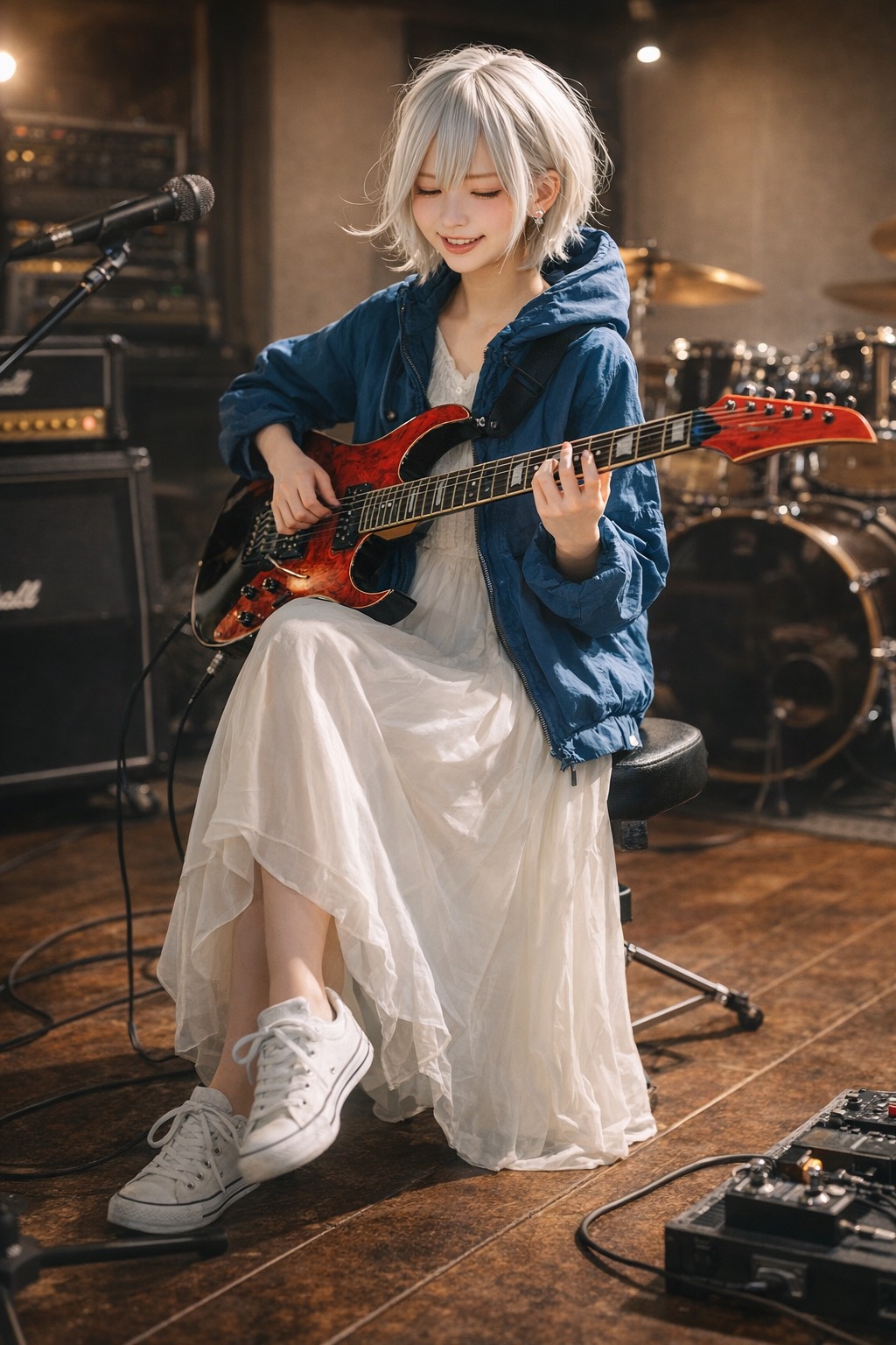 rap, groove-driven light metal, slap bass as main rhythmic hook, funky popping bass lines, bright and pop electric guitar with catchy cutting riffs, sharp light metal lead guitar with fast alternate picking and melodic shredding, three female instrumentalists session, high technical performance, tight rhythm, dynamic build, energetic and cool atmosphere, studio session vibe, modern Japanese band sound, powerful yet playful, instrumental focus, no rap, no growl, electric, metal, rhythmic, light, pop, playful, bright, funky, dynamic