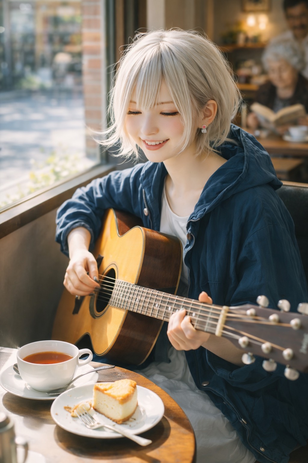 folk, solo jazz-influenced acoustic guitar fingerstyle, female vocals, emotional, jazz, theme, swing, acoustic, light, warm, smooth, sophisticated, rich, soft, vocal, fingerstyle