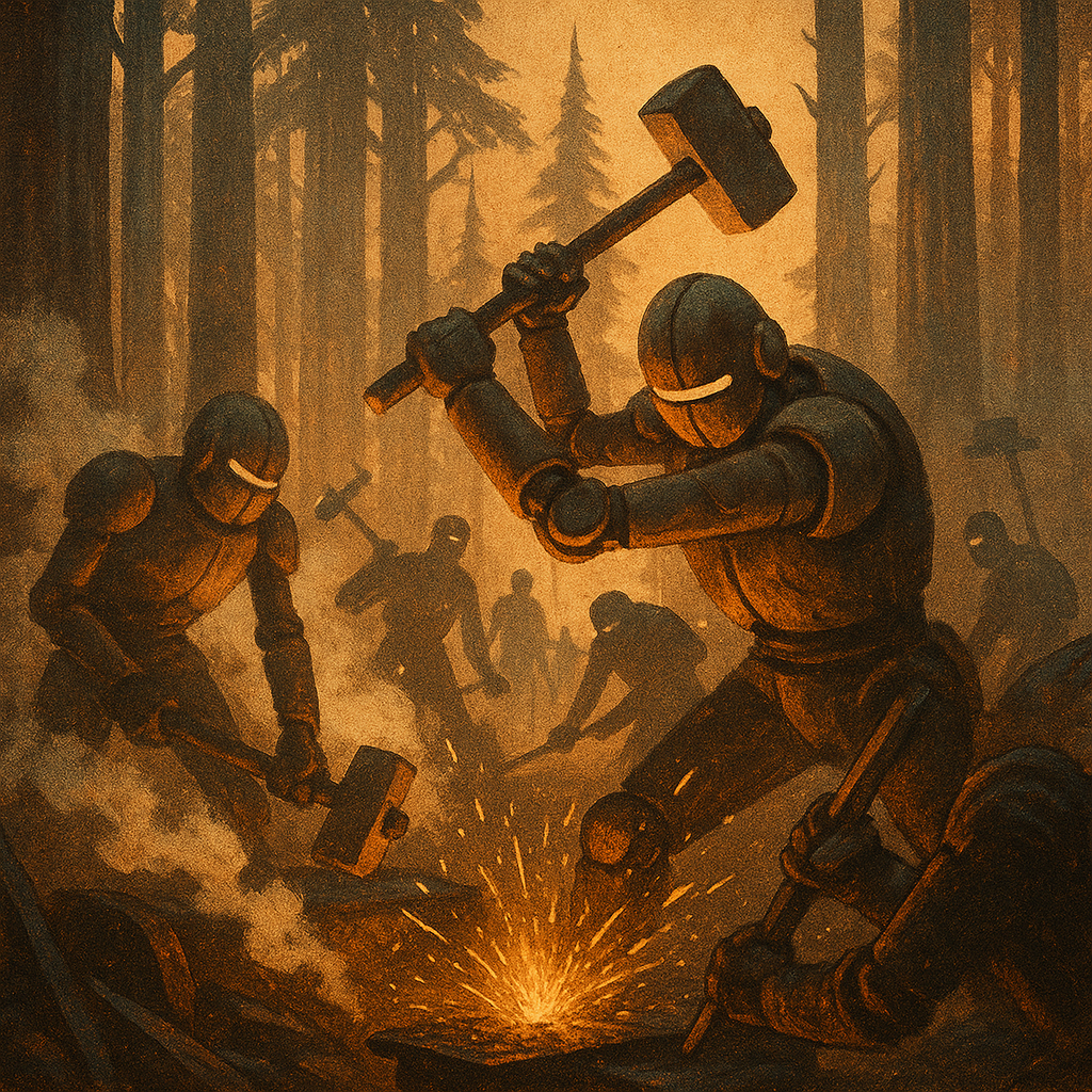 industrial folk chant, cinematic ambient, mechanical work song, open-air choral echoes, ‑modern pop, ‑EDM, ‑jazz, ‑blues, ‑country