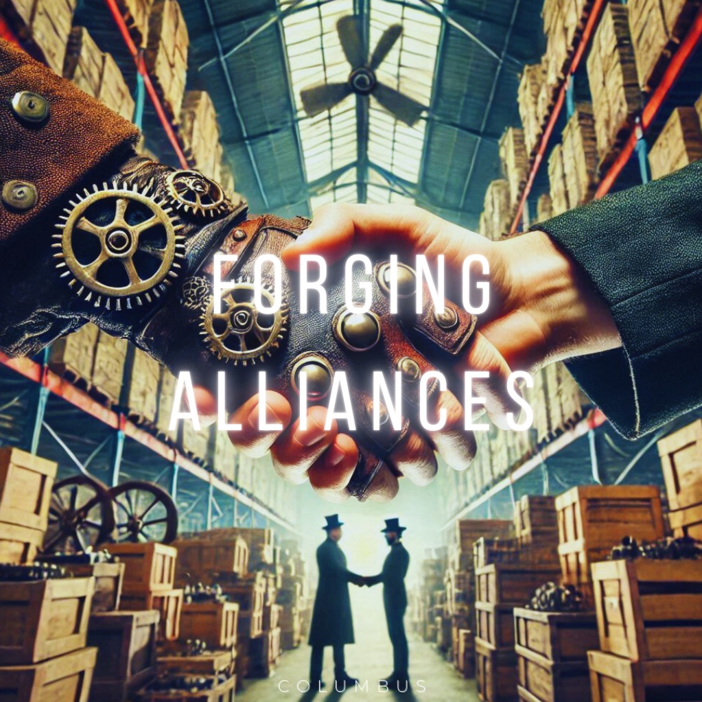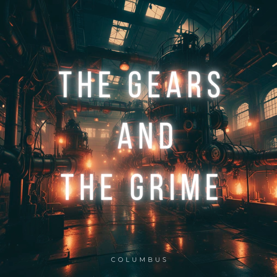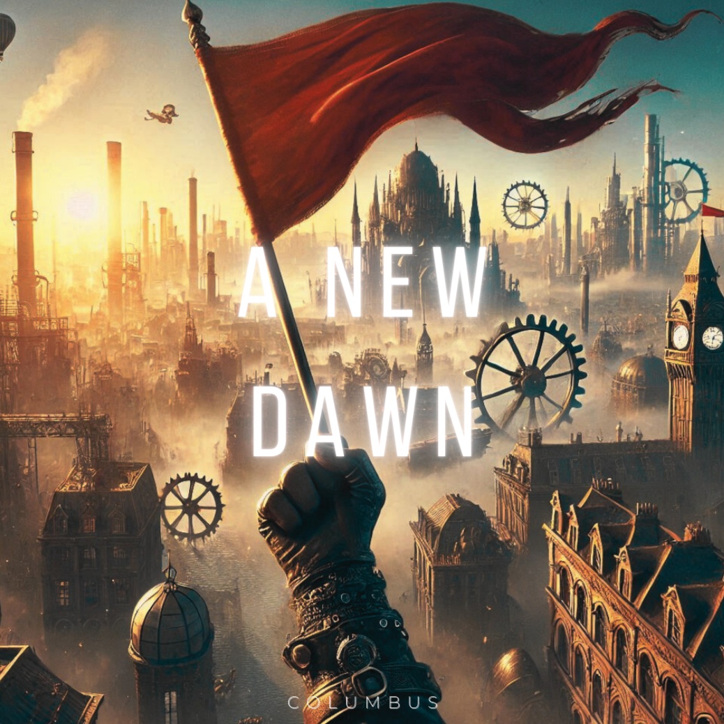 Rhytmic Industrial, Steampunk, Male Voices, City Noises in background, people talking quietly in the background, full of positive energy