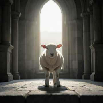Simple and singable melody emphasising minimalist and ultra-melodic vocal beauty, Meditative choral ostinato in four-part SATB harmony, Slow, ethereal, and reverent sacred music, Soft acoustic guitar fingerpicking and a gentle pastoral flute counter-melody, Massive cathedral reverb, spacious mix, wave-like vocal swells, ancient and solemn atmosphere, legato delivery