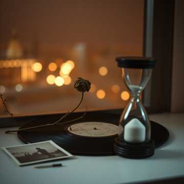 Soft, crackling vinyl textures underpin gentle, jazzy piano chords and muted guitar plucks, Sparse, downtempo beats with subtly filtered hi-hats create a sense of space, Occasional synth pads gently blend with mellow bass, while ambient noise enhances the melancholic mood