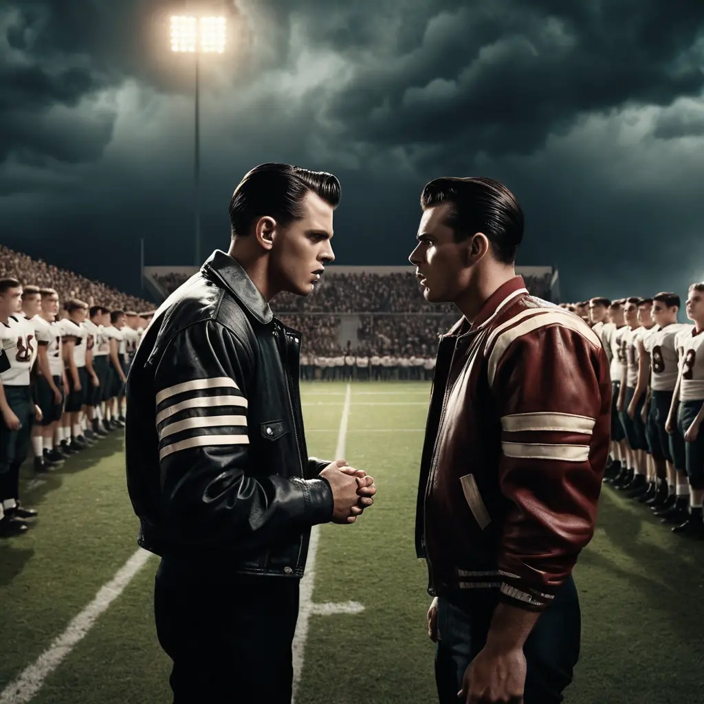 1950s Rockabilly, Fifties, Teen Heartthrob Vocals, Rebellious, upbeat, carefree, Twangy Surf Guitar, stand-up bass