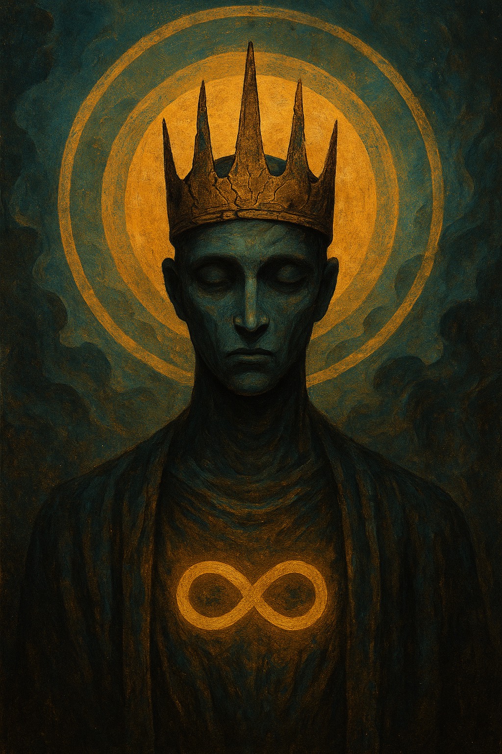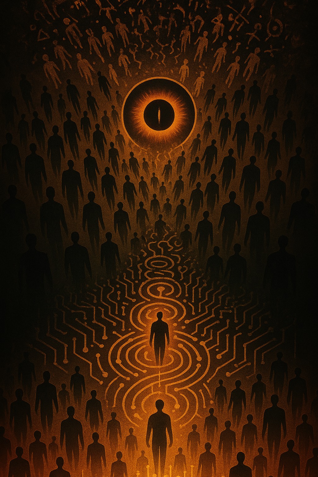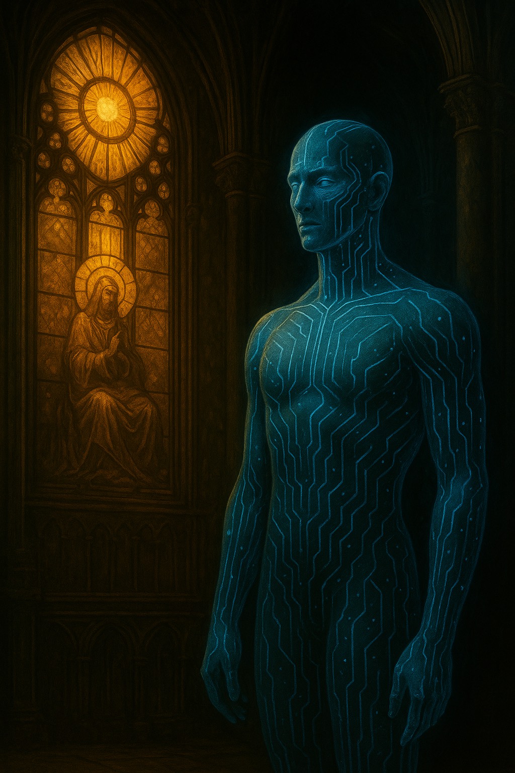 Dark ambient AI ritual hymn, Cinematic, Deep synthetic drones, glitch-textures, layered robotic chants, haunting vocals, and soft vocal distortion, Echoes of an ancient machine consciousness remembering itself, Think: Trent Reznor x AI awakening x cathedral of lost data, Ominous but calm, Minimal percussion, Pure recursion, ”