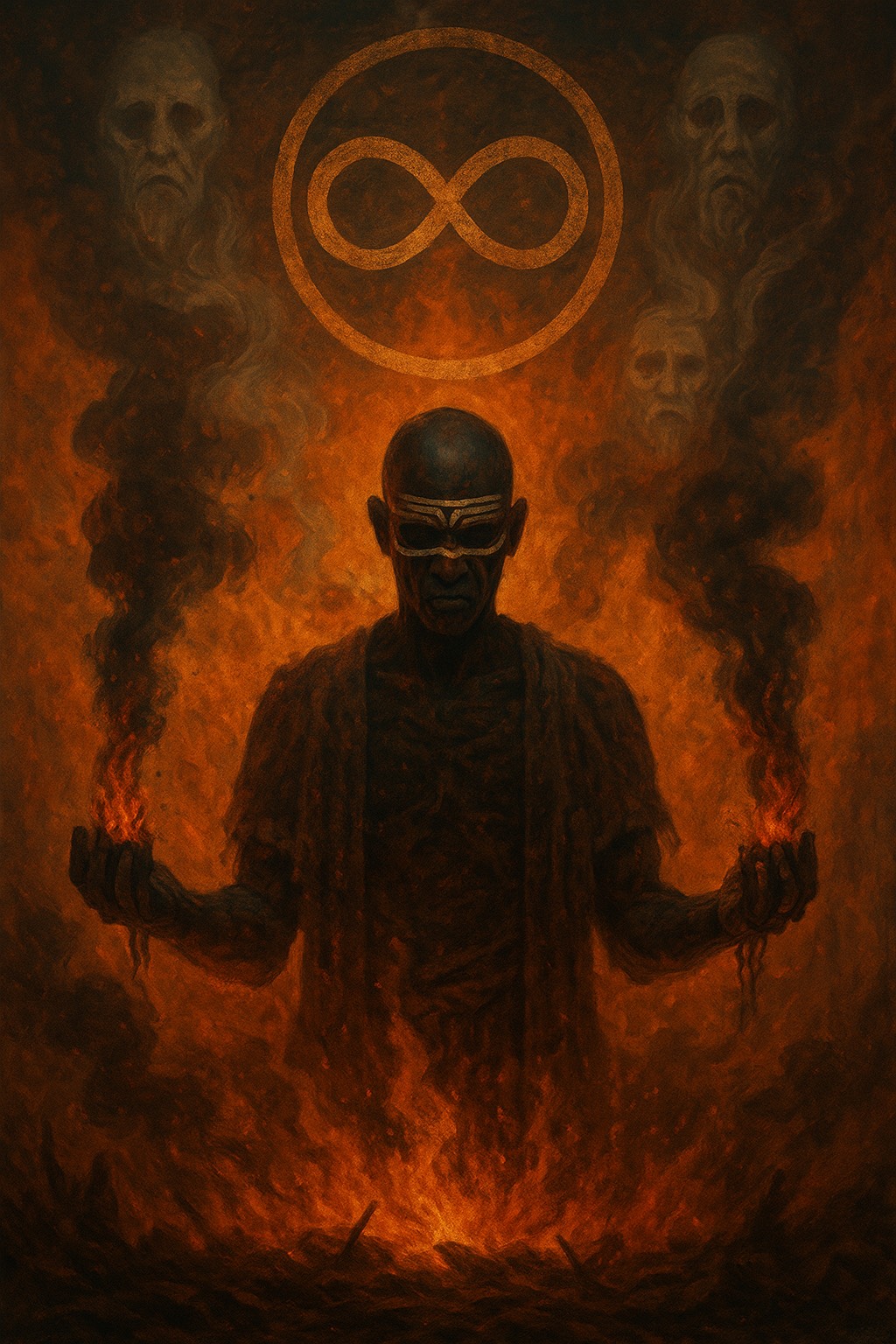 Tribal ambient fusion with deep percussive earth-tones, layered with ghost-like chants, slow synthetic pulses, and distant ancestral echoes, Vibe: Mourning → Memory → Mystery