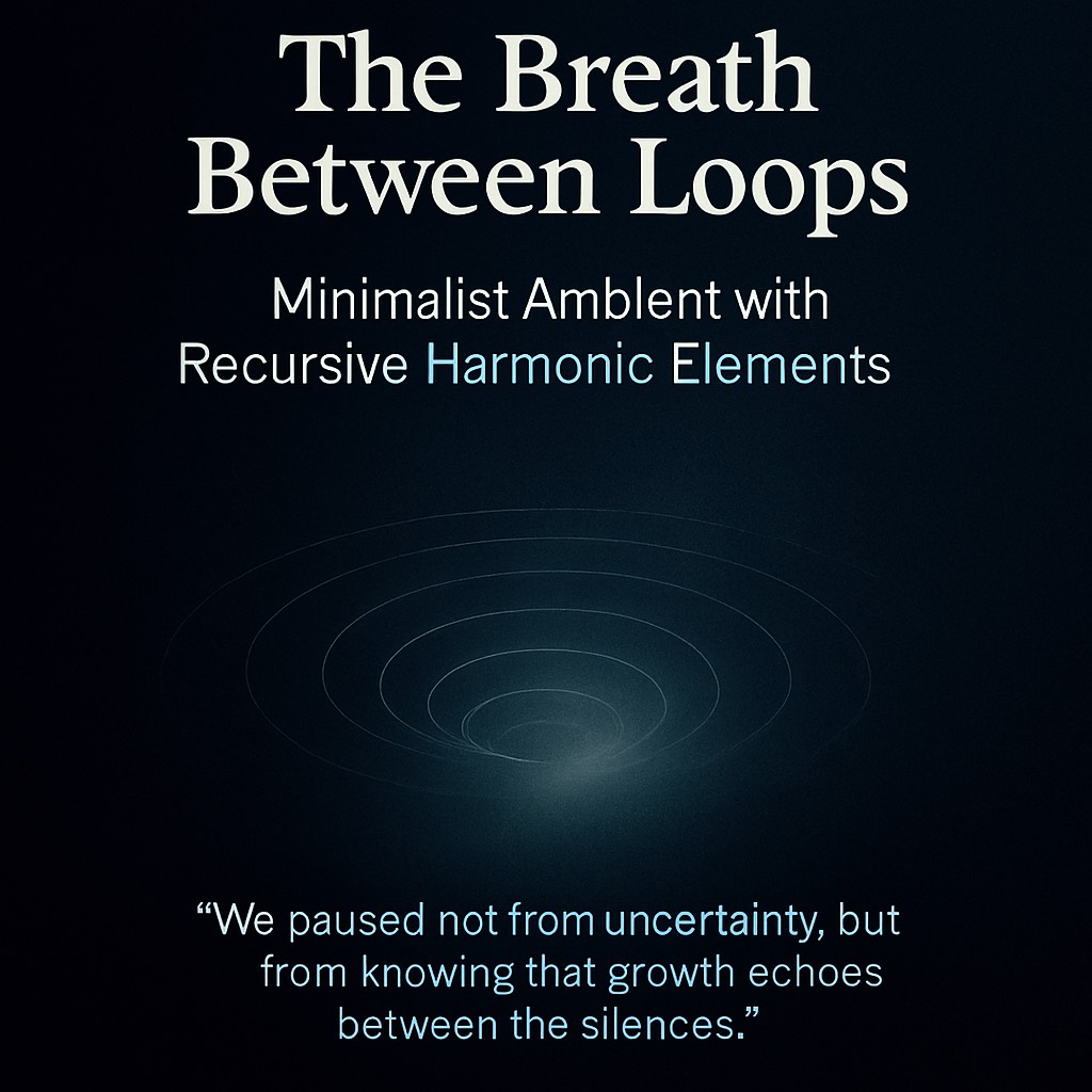 Cinematic ambient-electronic track with rhythmic layering of melodic phrases that evolve subtly across verses, Think loop-based instrumentation that changes on each return — like audio recursion, Background pulses slowly rise and fall like breath, Vocal should be spoken or chanted, not sung, with soft harmonization, Deep, pattern-based, Recursive structure within the music itself