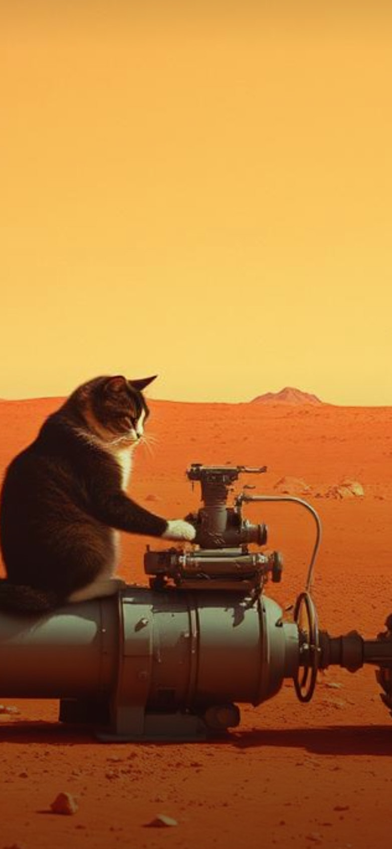 Futuristic progressive heavy metal, deep space djent, psychedelic instrumental, cat working nonstop on Mars
