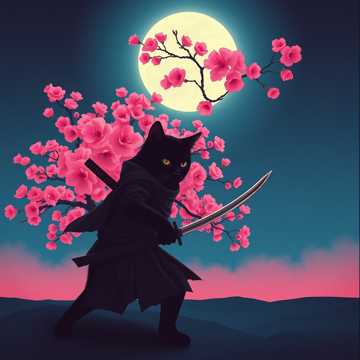 samurai-style Japanese rock, featuring heavy guitars and traditional instruments like shamisen and shakuhachi, with a cool and mysterious ninja/samurai cat as the theme, cinematic, dramatic, fast and sharp