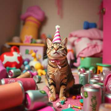 heavy metal, screaming, fast tempo, chaotic, emotional, cute and possessive love, drunk boyfriend returns at 11:58 PM, funny and dramatic, cat
