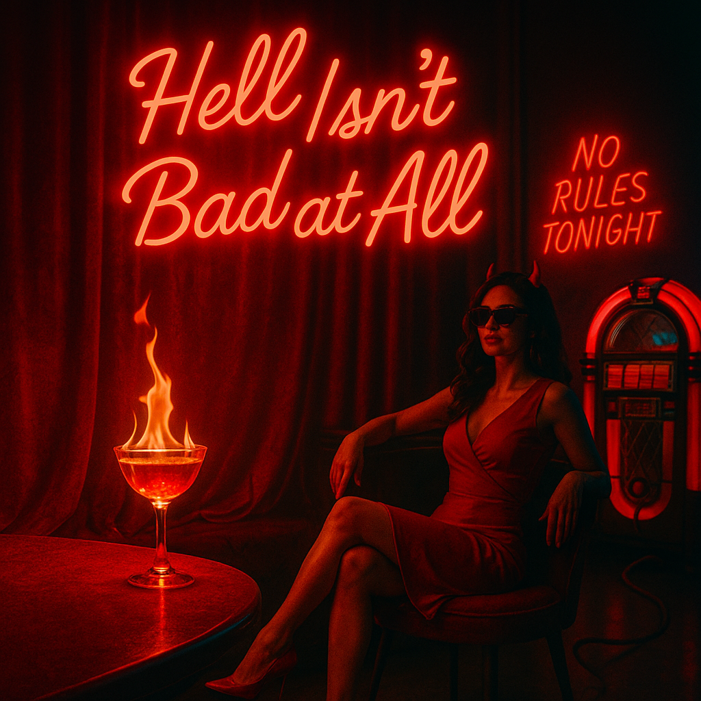 80s pop rock, female vocal, upbeat, satirical, retro synths, electric guitar, 124 BPM, catchy chorus, bright and bold, playful, rebellious, neon vibes, empowerment, no judgment, danceable, feel-good defiance
