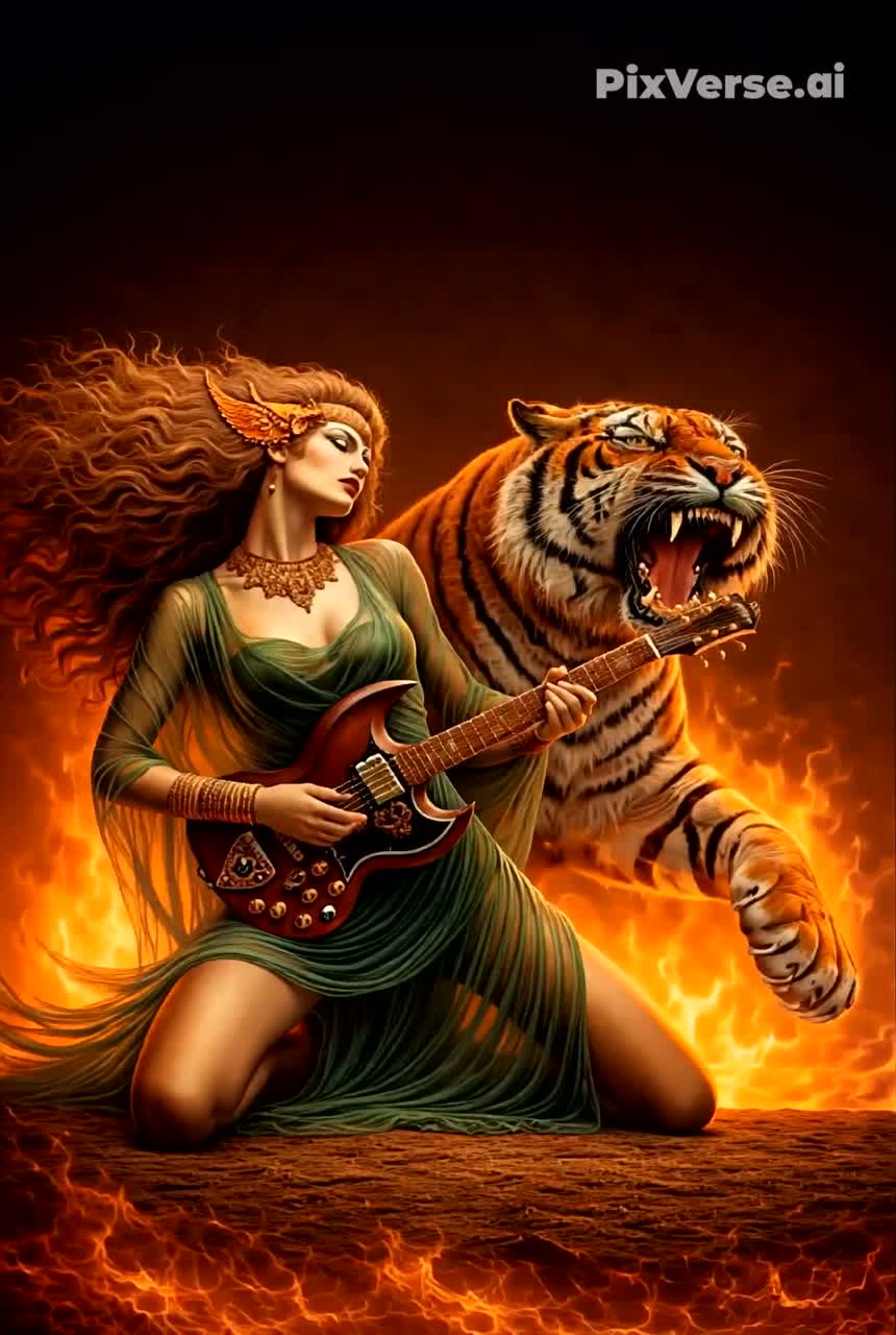 Late-60s psychedelic glam-blues fusion with cinematic hard-rock presence and cosmic art-pop atmosphere, Slow, warm fuzzed guitars shimmer with gold-tinged overtones, Hammond organ swells in spiraling cosmic chords, Deep analog bass moves like liquid gravity, Heartbeat-like drums and rolling toms create sensual, hypnotic tension, Occasional baroque harpsichord flourishes add surreal elegance, Lead vocal: soulful female voice switching between smoky baritone verses and ethereal falsetto choruses, with whispered intimate lines close to the ear, Layered harmonies and cosmic choir textures bloom in reverb-heavy space, Guitar solo: rapid, fluid, virtuosic, wah-drenched, full of bends, slides, harmonics, spiraling like galaxies, Overall mood: sensual, poetic, glamorous, hypnotic, mysterious, dreamlike, euphoric, with cinematic crescendos and a soft falsetto fade-out into a whispered outro
