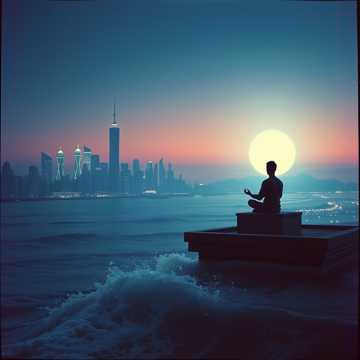 Serene, cinematic ambient soundtrack blending modern soundscapes with traditional Japanese motifs, Use spacious reverb, slow-building layers, and occasional taiko drum for subtle drama and a sense of emotional depth