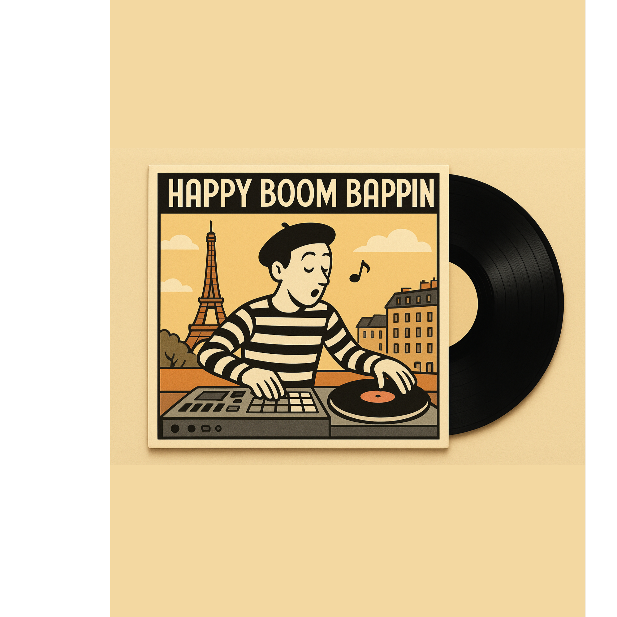 Instrumental hiphop track with a funny playful mood, 1960s French comedy samples, jazzy French soundtrack energy, lo-fi accordions and muted trumpets, bouncy upright bass, chopped samples from vintage chanson vinyl, old public radio snippets, cinematic Parisian strings, layered MPC swing, accordion stabs, dusty vinyl textures, funky jazz drums, nostalgic movie dialogues, guitar jazz licks, sample-based beat, French radio crackle, musique de film sample vibe, cheeky French soul grooves, rhythmic saxophone stabs, crate-digging energy, looped upright bass, lazy head-nod rhythm, a funny and playful yet funky vinyl-sampled Parisian groove collage of humor, swing, and soul, a pounding fat head nodding bass beat, congas and bongos like from an old 60s style dusty record (apache sample style) sampled cut and pasted, sound collage of multiple tiny samples made into something new, deep bassline, scratching making new sounds and lyrics by scratching, ‑pop, ‑funk, ‑rock, ‑metal, ‑techno, ‑house, ‑boring