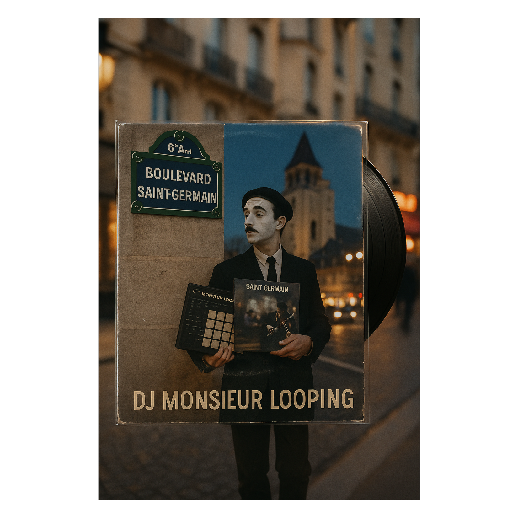 French dark jazz-drilling electronic hip-hop beats and groove track, in the Saint-Germain-des-Prés spirit, with samples from Stéphane Grappelli and Gus Viseur chopped into swinging loops, Vinyl crackle textures, upright bass, French musette accordion riffs, dark jazzy drum breaks, brushed snare, MPC swing collage, French radio samples from vintage jazz programs, nightclub crowd ambiance, live stage announcer voice samples, filtered mic effects, Accordion solo meets turntable cuts, violin glissando layered on a laid-back and dark heavy boom bap beat, Soft-spoken French vocals looped rhythmically, Saint Germain café energy, a moody dark, cool, and nostalgic sound collage, Dusty, warm, playful, and sophisticated, melancholic but smooth, Electronic dark synths and heavy dark hiphop beats, MPC sound collage, Avant-garde sampling and scratching, a long stretched track, backwards music playing, dark danceable edm style, ‑pop, ‑funk, ‑rock, ‑metal, ‑techno, ‑house, ‑boring